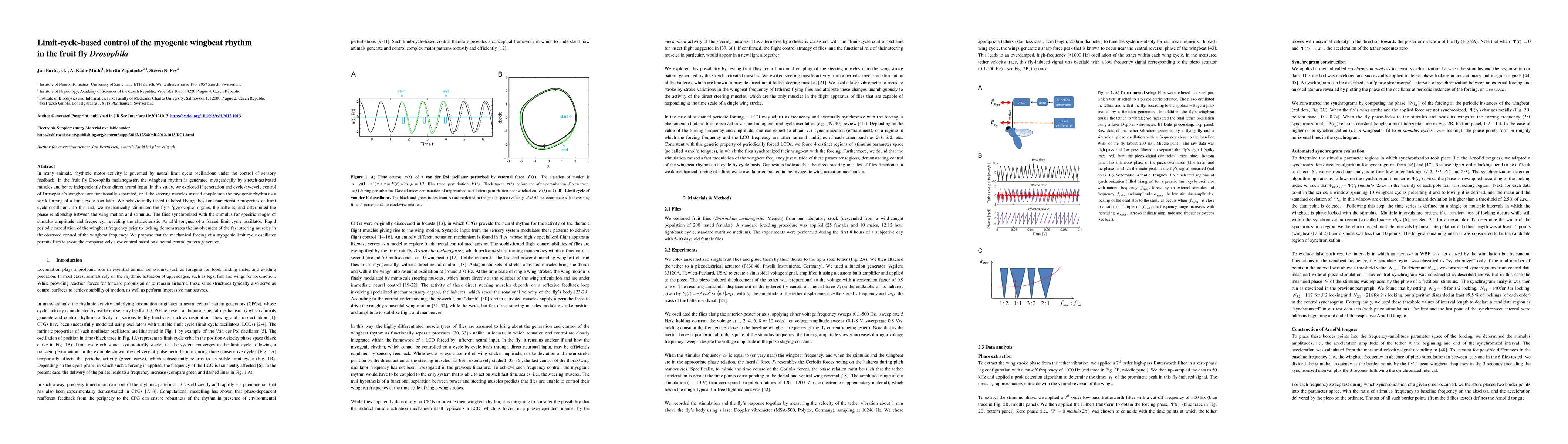 Researchers found that the fruit fly Drosophila uses a myogenic limit cycle oscillator to control its wingbeat rhythm, avoiding the need for neural input, and demonstrated this through experiments with mechanical stimulation of the fly's gyroscopic organs.