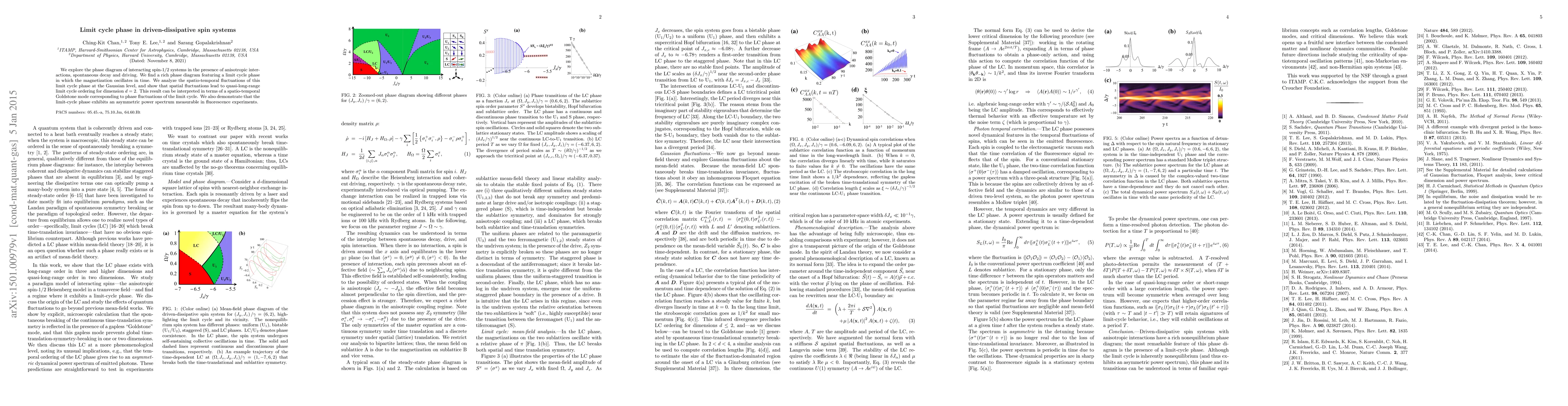 Researchers discovered a limit cycle phase in driven-dissipative spin systems, where magnetization oscillates over time, and found that spatial fluctuations lead to quasi-long-range ordering in 2D systems.