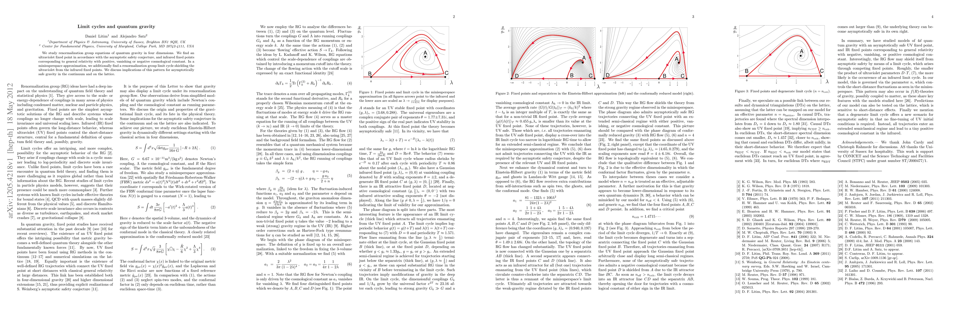We study renormalization group equations of quantum gravity in four dimensions. We find an ultraviolet fixed point in accordance with the asymptotic safety conjecture, and infrared fixed points corresponding to general relativity with positive, vanishing or negative cosmological constant. In a minisuperspace approximation, we additionally find a renormalization group limit cycle shielding the ultraviolet from the infrared fixed points. We discuss implications of this pattern for asymptotically safe gravity in the continuum and on the lattice.