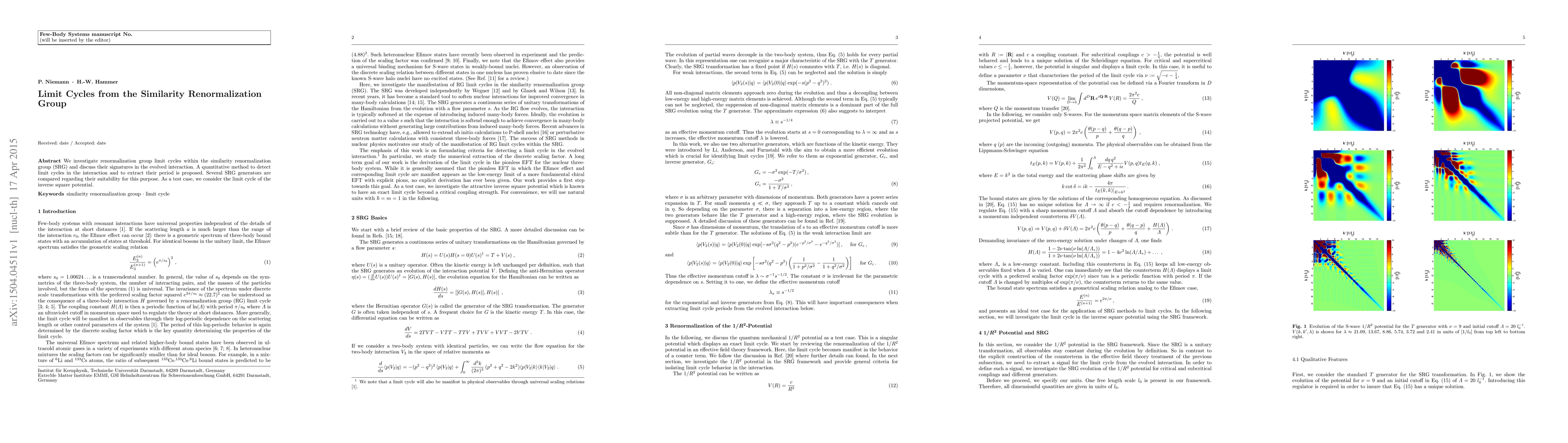 We investigate renormalization group limit cycles within the similarity renormalization group (SRG) and discuss their signatures in the evolved interaction. A quantitative method to detect limit cycles in the interaction and to extract their period is proposed. Several SRG generators are compared regarding their suitability for this purpose. As a test case, we consider the limit cycle of the inverse square potential.