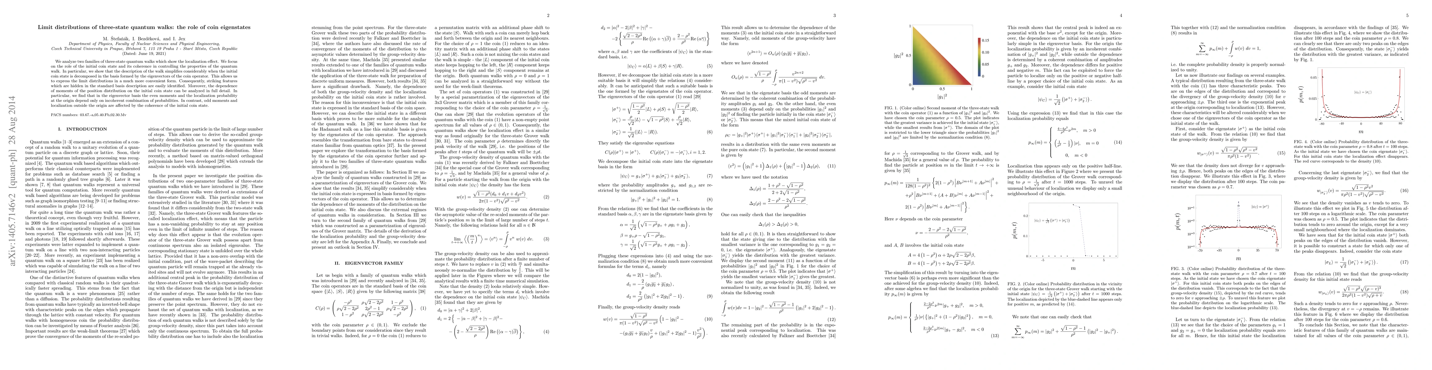 This paper investigates the localization effect in two families of three-state quantum walks, emphasizing the role of the initial coin state's coherence. It reveals that expressing the limit distributions in the basis of coin operator eigenvectors simplifies the analysis and highlights previously hidden features.