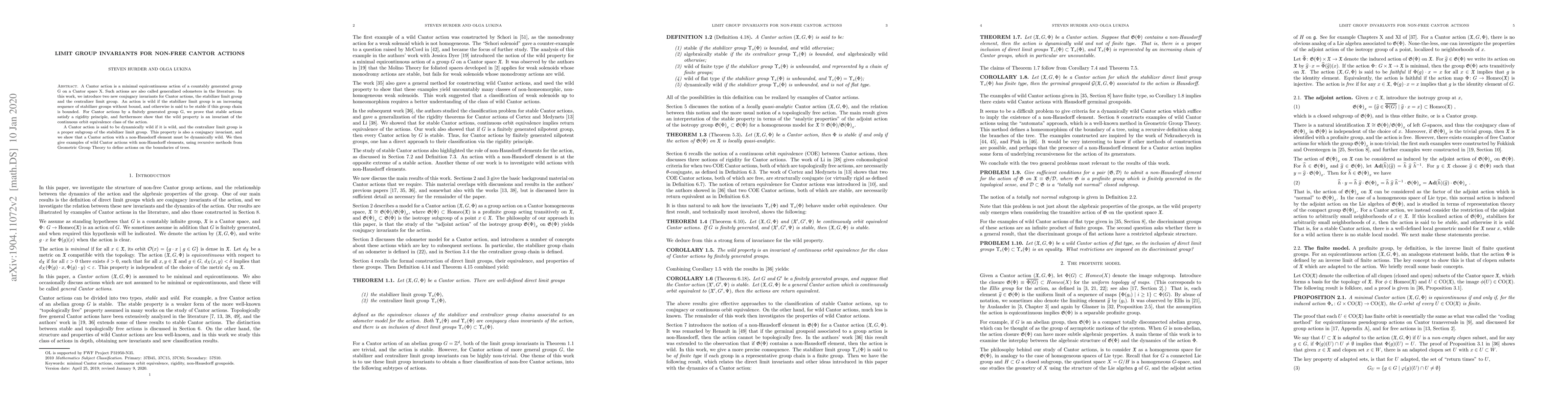 This paper introduces new invariants for Cantor actions, namely the stabilizer and centralizer limit groups, to classify actions as stable or wild. It establishes a rigidity principle for stable actions and demonstrates that the wild property is an invariant under continuous orbit equivalence, highlighting dynamically wild actions as a distinct subclass.