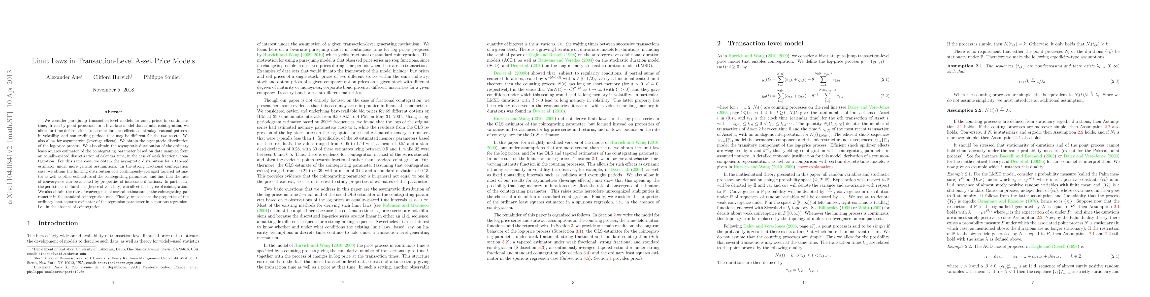 We consider pure-jump transaction-level models for asset prices in continuous time, driven by point processes. In a bivariate model that admits cointegration, we allow for time deformations to account for such effects as intraday seasonal patterns in volatility, and non-trading periods that may be different for the two assets. We also allow for asymmetries (leverage effects). We obtain the asymptotic distribution of the log-price process. We also obtain the asymptotic distribution of the ordinary least-squares estimator of the cointegrating parameter based on data sampled from an equally-spaced discretization of calendar time, in the case of weak fractional cointegration. For this same case, we obtain the asymptotic distribution for a tapered estimator under more
