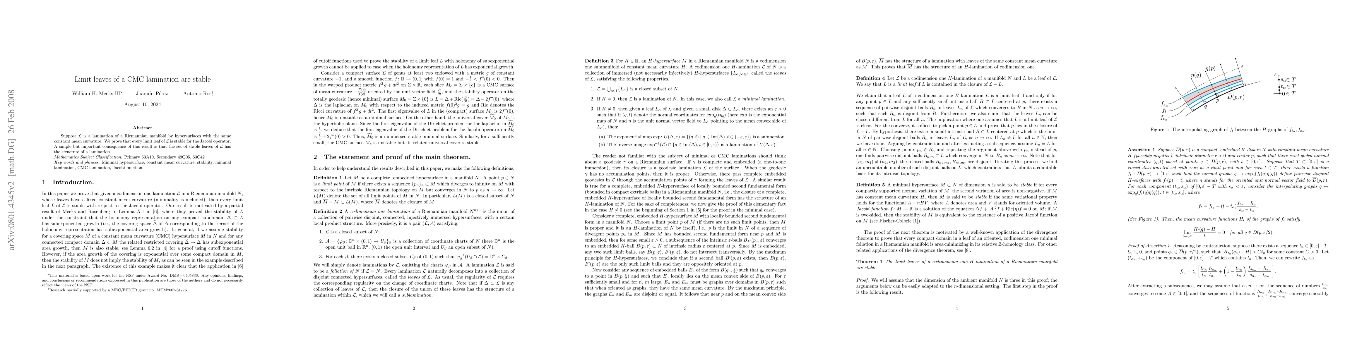 The paper establishes a new stability result for limit leaves in CMC laminations, extending previous work on minimal surfaces and providing a deeper understanding of the structural properties of such laminations.