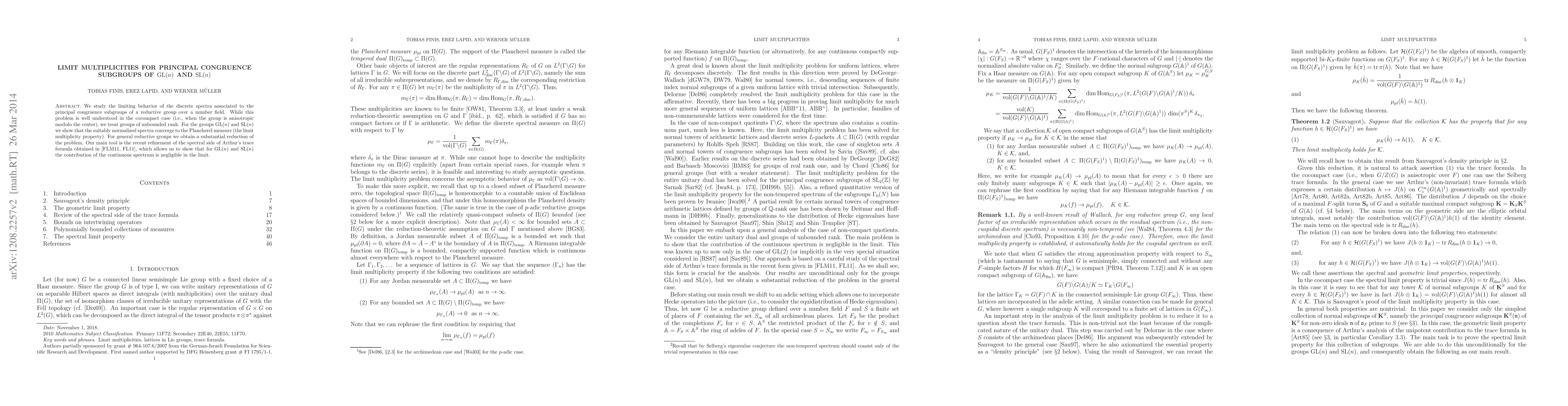 This research paper studies the limiting behavior of discrete spectra for principal congruence subgroups of GL(n) and SL(n), showing that suitably normalized spectra converge to the Plancherel measure in the limit, with significant implications for understanding reductive groups over number fields.