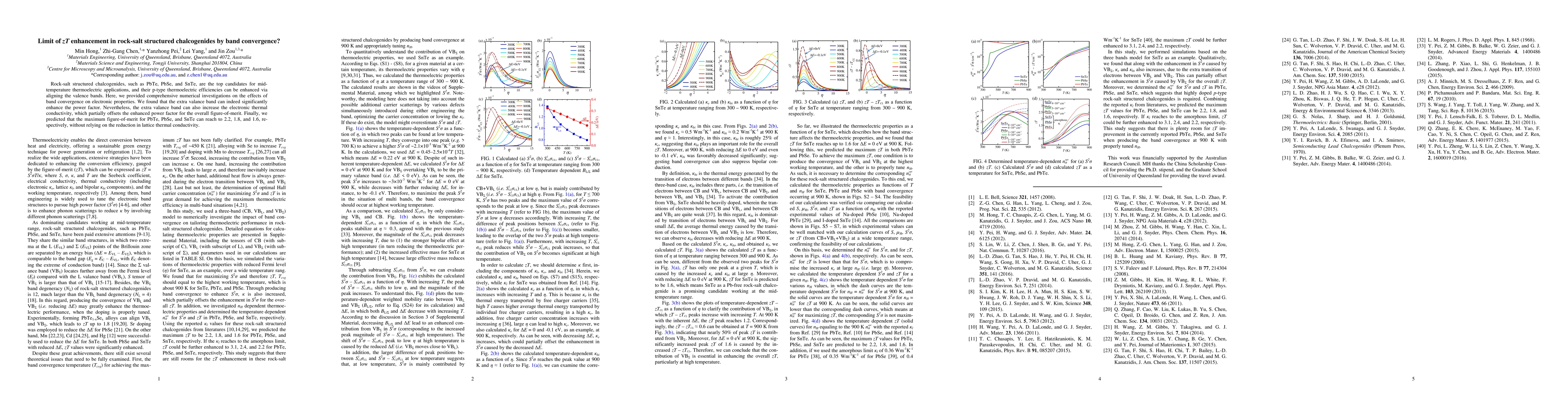 Rock-salt structured chalcogenides, such as PbTe, PbSe, and SnTe, are the top candidates for mid-temperature thermoelectric applications, and their p-type thermoelectric efficiencies can be enhanced via aligning the valence bands. Here, we provided comprehensive numerical investigations on the effects of band convergence on electronic properties. We found that the extra valance band can indeed significantly enhance the power factor. Nevertheless, the extra valance band can also increase the electronic thermal conductivity, which partially offsets the enhanced power factor for the overall figure-of-merit. Finally, we predicted that the maximum figure-of-merit for PbTe, PbSe, and SnTe can reach to 2.2, 1.8, and 1.6, re-spectively, without relying on the reduction in lattice thermal conductivity.