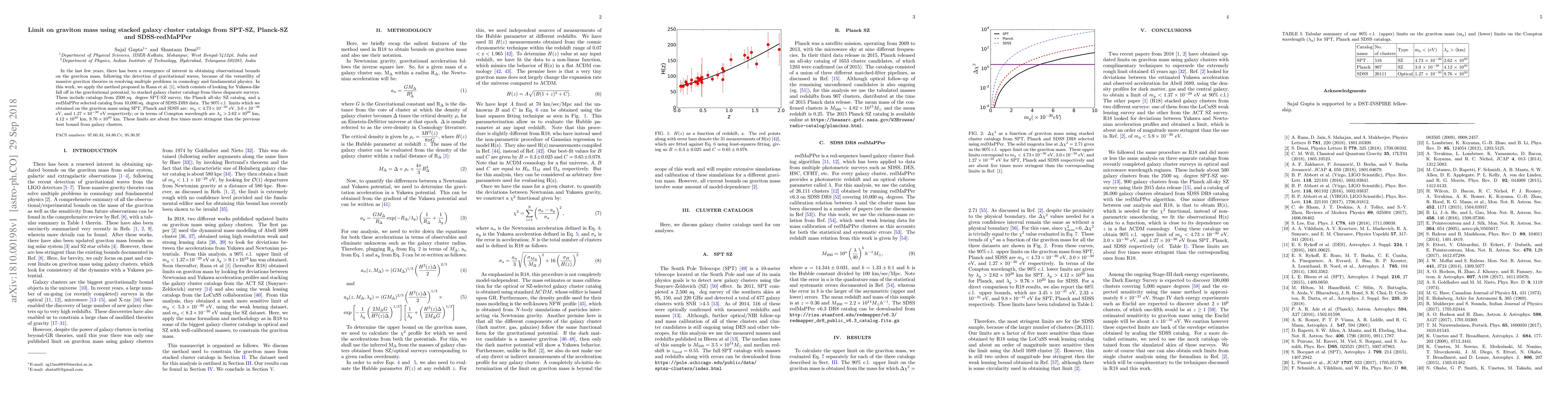 This paper sets new limits on the graviton mass using stacked galaxy cluster catalogs from three surveys, finding $m_g < 4.73 \times 10^{-30}$ eV from SPT, $3.0 \times 10^{-30}$ eV from Planck, and $1.27 \times 10^{-30}$ eV from SDSS, significantly improving previous constraints.