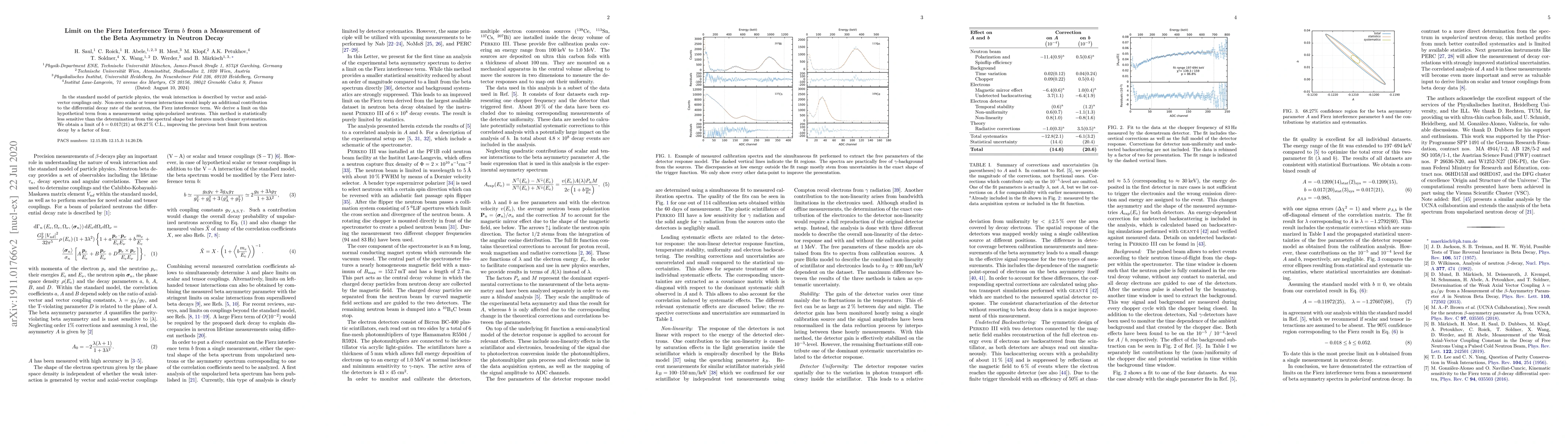 This paper sets a new limit on the Fierz interference term b in neutron decay, using spin polarized neutrons to measure beta asymmetry. The result, b = 0.017(21) at 68.27% confidence level, improves the previous best limit by a factor of four, demonstrating cleaner systematics despite lower statistical sensitivity.