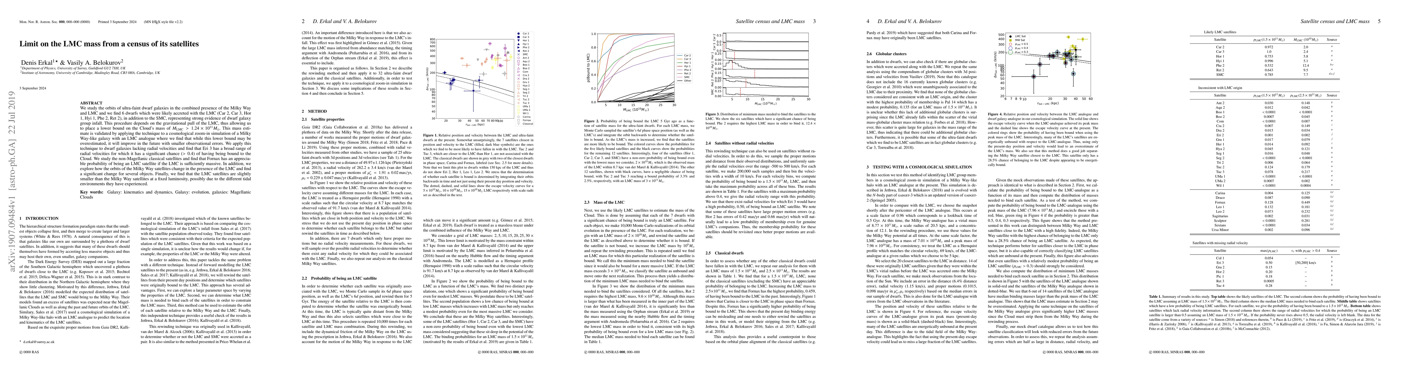 We study the orbits of ultra-faint dwarf galaxies in the combined presence of the Milky Way and LMC and we find 6 dwarfs which were likely accreted with the LMC (Car 2, Car 3, Hor 1, Hyi 1, Phe 2, Ret 2), in addition to the SMC, representing strong evidence of dwarf galaxy group infall. This procedure depends on the gravitational pull of the LMC, thus allowing us to place a lower bound on the Cloud's mass of $M_{\rm LMC} > 1.24\times10^{11} M_\odot$. This mass estimate is validated by applying the technique to a cosmological zoom-in simulation of a Milky Way-like galaxy with an LMC analogue where we find that while this lower bound may be overestimated, it will improve in the future with smaller observational errors. We apply this technique to dwarf galaxies lacking radial velocities and find that Eri 3 has a broad range of radial velocities for which it has a significant chance ($> 0.4$) of having being bound to the Cloud. We study the non-Magellanic classical satellites and find that Fornax has an appreciable probability of being an LMC satellite if the LMC is sufficiently massive. In addition, we explore how the orbits of the Milky Way satellites change in the presence of the LMC and find a significant change for several objects. Finally, we find that the LMC satellites are slightly smaller than the Milky Way satellites at a fixed luminosity, possibly due to the different tidal environments they have experienced.