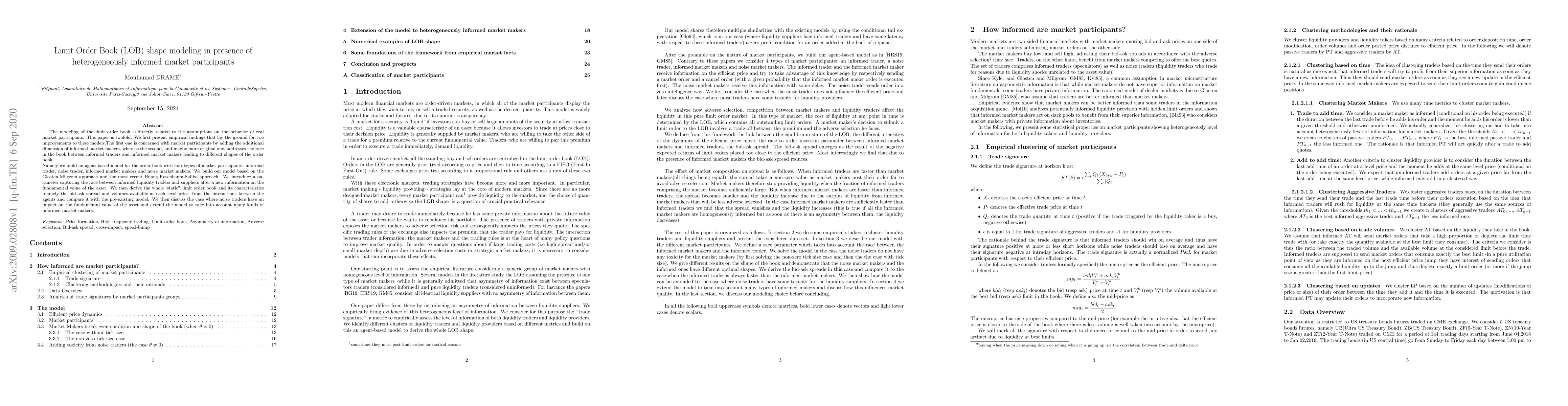 The modeling of the limit order book is directly related to the assumptions on the behavior of real market participants. This paper is twofold. We first present empirical findings that lay the ground for two improvements to these models.The first one is concerned with market participants by adding the additional dimension of informed market makers, whereas the second, and maybe more original one, addresses the race in the book between informed traders and informed market makers leading to different shapes of the order book. Namely we build an agent-based model for the order book with four types of market participants: informed trader, noise trader, informed market makers and noise market makers. We build our model based on the Glosten-Milgrom approach and the most recent Huang-Rosenbaum-Saliba approach. We introduce a parameter capturing the race between informed liquidity traders and suppliers after a new information on the fundamental value of the asset. We then derive the whole 'static' limit order book and its characteristics -- namely the bid-ask spread and volumes available at each level price -- from the interactions between the agents and compare it with the pre-existing model. We then discuss the case where noise traders have an impact on the fundamental value of the asset and extend the model to take into account many kinds of informed market makers.