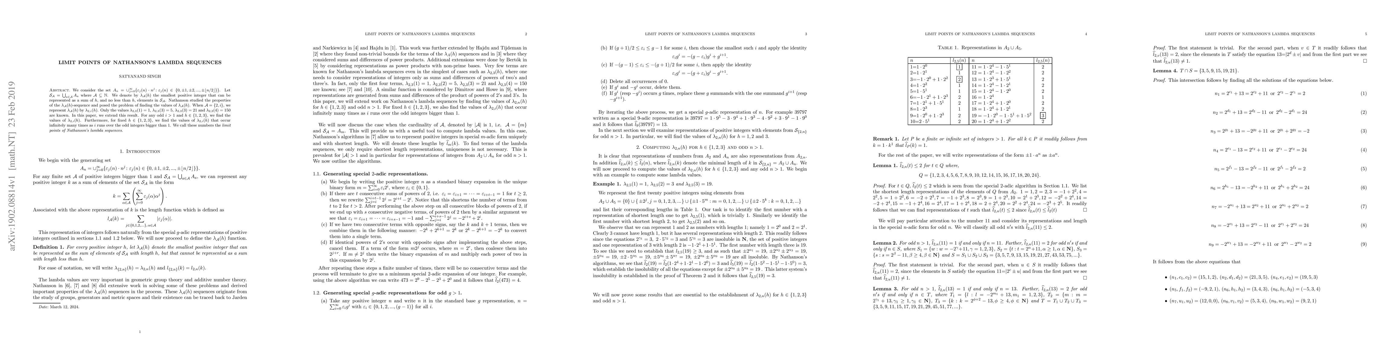 This paper extends previous work on Nathanson's Lambda sequences, specifically for $lambda_{2,i}(h)$ with odd $i>1$ and $h$ in ${1,2,3}$. It identifies the limit points of these sequences, providing values that occur infinitely often as $i$ increases, contributing to the understanding of sum representations in number theory.