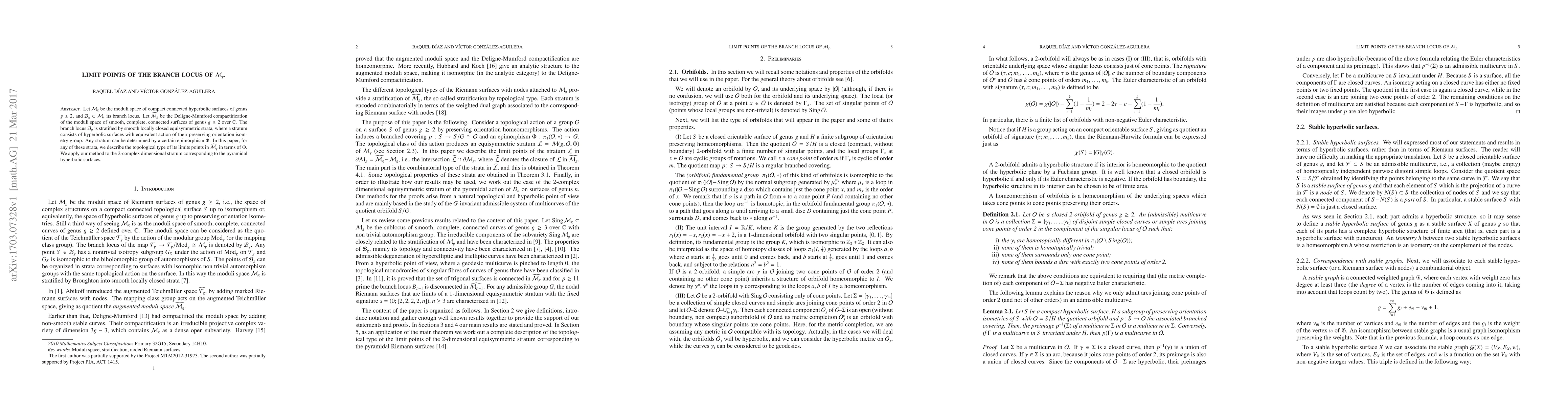 This paper studies the limit points of the branch locus ${\mathcal B}_g$ in the moduli space $\mathcal{M}_g$ of hyperbolic surfaces of genus $g \geq 2$, determining their topological types in the Deligne-Mumford compactification $\widehat{\mathcal{M}}_g$ via epimorphisms $\Phi$. It applies this method to a $2$-complex dimensional stratum of pyramidal hyperbolic surfaces.