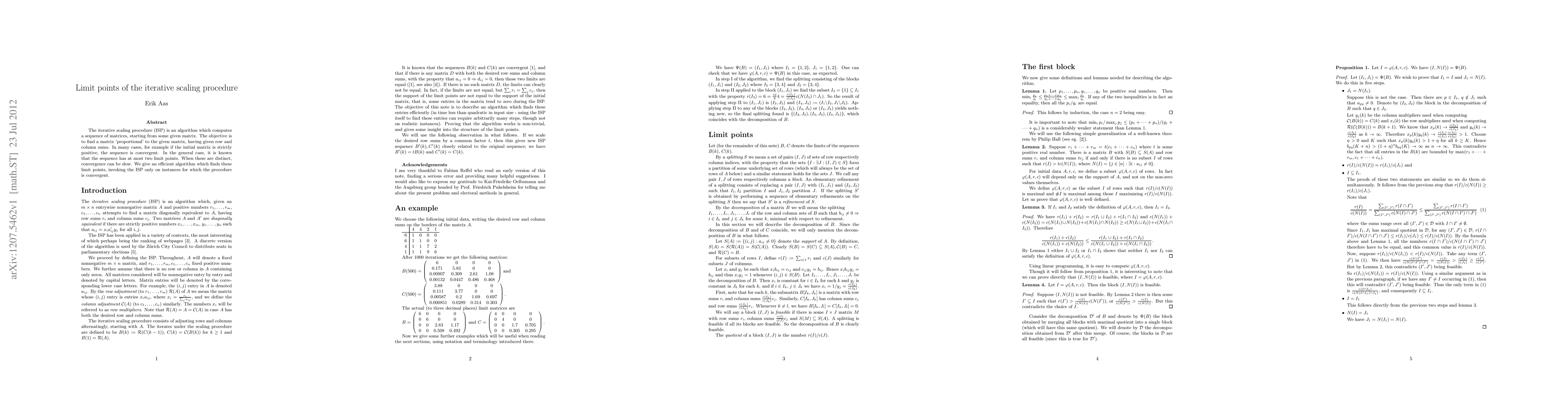 The iterative scaling procedure (ISP) is an algorithm which computes a sequence of matrices, starting from some given matrix. The objective is to find a matrix 'proportional' to the given matrix, having given row and column sums. In many cases, for example if the initial matrix is strictly positive, the sequence is convergent. In the general case, it is known that the sequence has at most two limit points. When these are distinct, convergence can be slow. We give an efficient algorithm which finds these limit points, invoking the ISP only on instances for which the procedure is convergent.