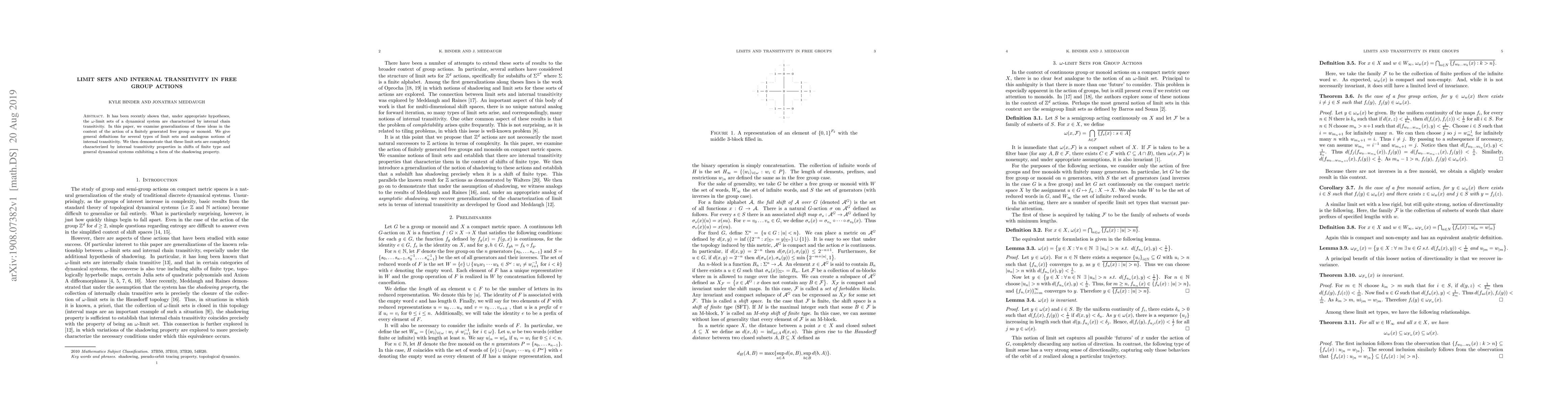 It has been recently shown that, under appropriate hypotheses, the $\omega$-limit sets of a dynamical system are characterized by internal chain transitivity. In this paper, we examine generalizations of these ideas in the context of the action of a finitely generated free group or monoid. We give general definitions for several types of limit sets and analogous notions of internal transitivity. We then demonstrate that these limit sets are completely characterized by internal transitivity properties in shifts of finite type and general dynamical systems exhibiting a form of the shadowing property.