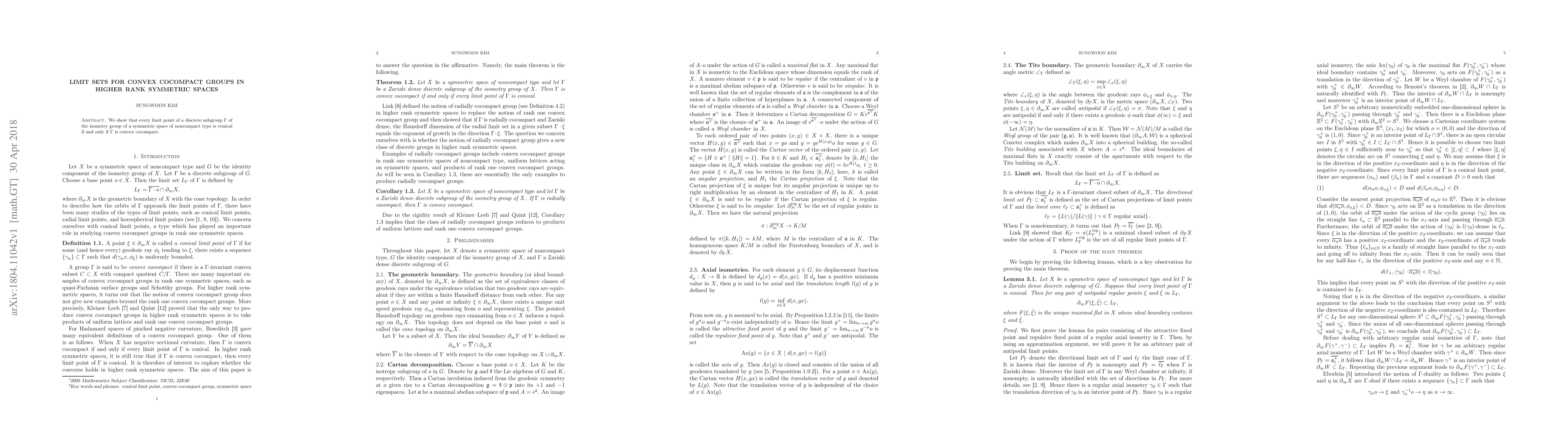 Summary: This paper proves that a Zariski dense discrete subgroup $\Gamma$ of the isometry group of a noncompact symmetric space is convex cocompact if and only if all its limit points are conical. This establishes a connection between the geometric properties of $\Gamma$ and the structure of its limit points.