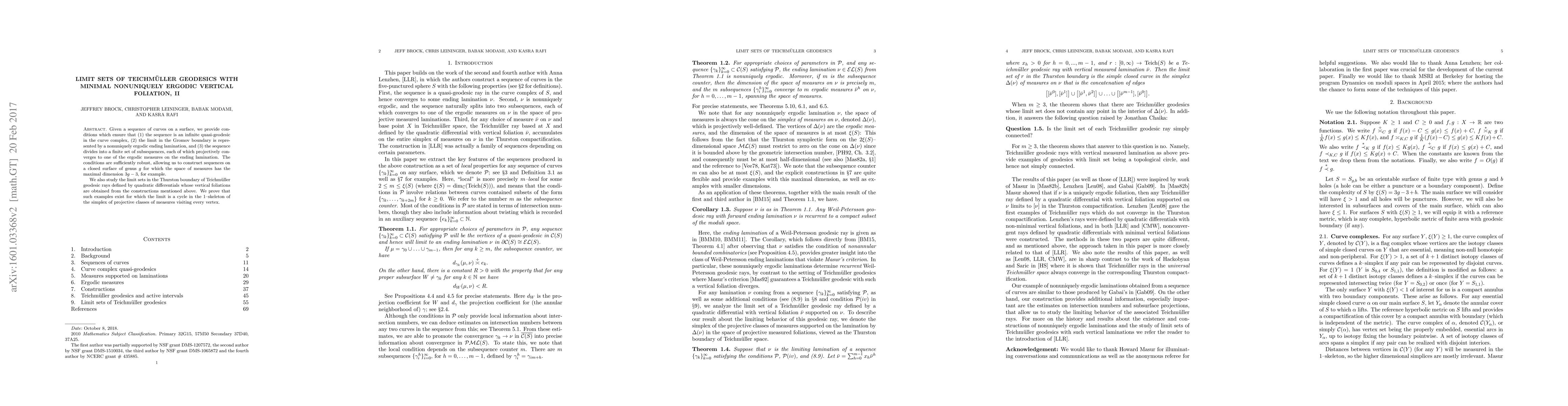 This paper establishes conditions for sequences of curves on a surface to form infinite quasi-geodesics in the curve complex, converging to nonuniquely ergodic ending laminations. It also explores the limit sets of Teichmüller geodesic rays defined by quadratic differentials, showing that these can form cycles in the Thurston boundary.
