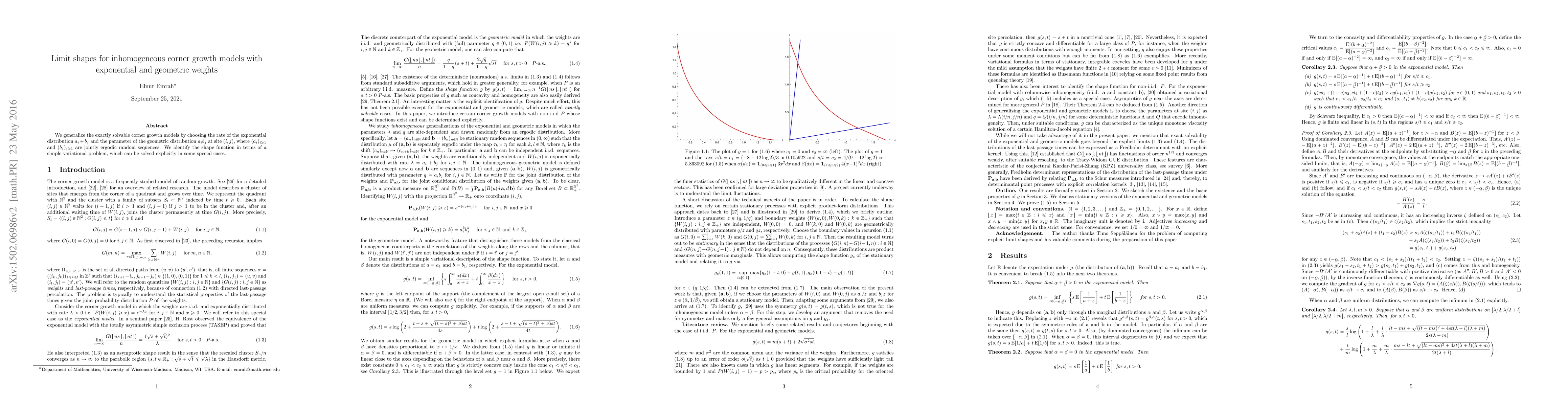 This paper generalizes exactly solvable corner growth models using exponential and geometric weights, identifying the shape function through a variational problem, with explicit solutions in certain special cases.
