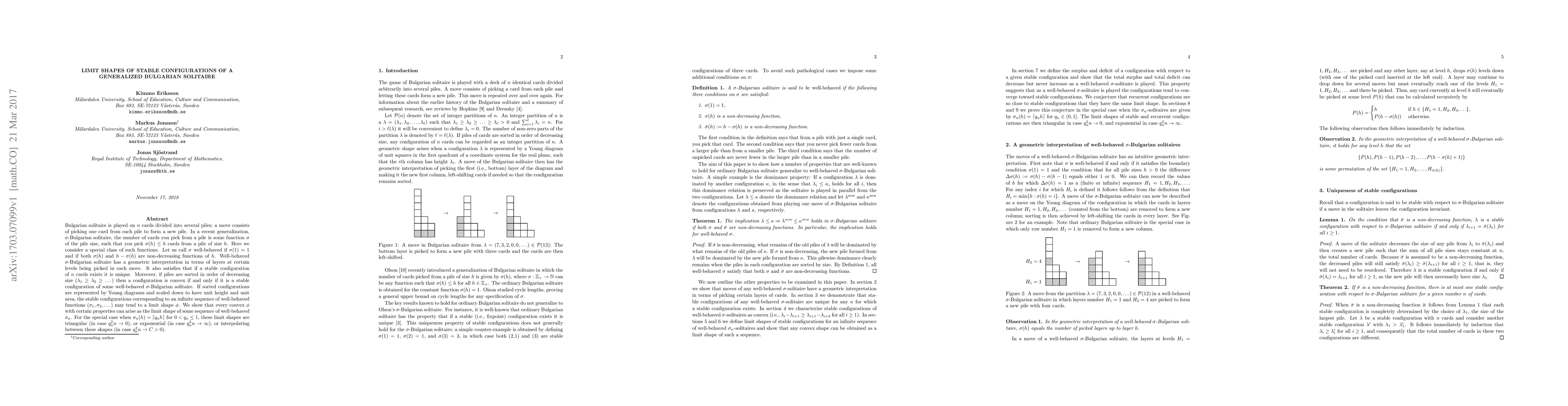 Bulgarian solitaire is played on $n$ cards divided into several piles; a move consists of picking one card from each pile to form a new pile. In a recent generalization, $\sigma$-Bulgarian solitaire, the number of cards you pick from a pile is some function $\sigma$ of the pile size, such that you pick $\sigma(h)\le h$ cards from a pile of size $h$. Here we consider a special class of such functions. Let us call $\sigma$ well-behaved if $\sigma(1)=1$ and if both $\sigma(h)$ and $h-\sigma(h)$ are non-decreasing functions of $h$. Well-behaved $\sigma$-Bulgarian solitaire has a geometric interpretation in terms of layers at certain levels being picked in each move. It also satisfies that if a stable configuration of $n$ cards exists it is unique. Moreover, if piles are sorted in order of decreasing size ($\lambda_1 \ge \lambda_2\ge \dots$) then a configuration is convex if and only if it is a stable configuration of some well-behaved $\sigma$-Bulgarian solitaire. If sorted configurations are represented by Young diagrams and scaled down to have unit height and unit area, the stable configurations corresponding to an infinite sequence of well-behaved functions ($\sigma_1, \sigma_2, \dots$) may tend to a limit shape $\phi$. We show that every convex $\phi$ with certain properties can arise as the limit shape of some sequence of well-behaved $\sigma_n$. For the special case when $\sigma_n(h)=\lceil q_n h \rceil$ for $0 < q_n \le 1$, these limit shapes are triangular (in case $q_n^2 n\rightarrow 0$), or exponential (in case $q_n^2 n\rightarrow \infty$), or interpolating between these shapes (in case $q_n^2 n\rightarrow C>0$).