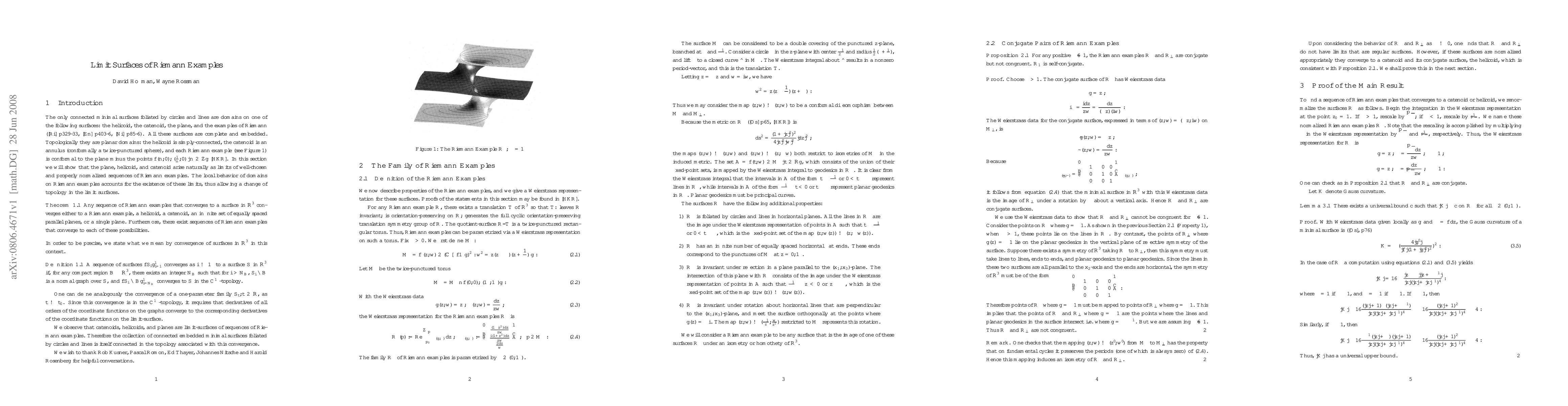This paper examines the limit surfaces of Riemann's embedded, singly periodic minimal surfaces, which include the helicoid, the catenoid, a single plane, or an infinite set of parallel planes. These surfaces illustrate the boundary behaviors of minimal surfaces in Riemannian geometry.