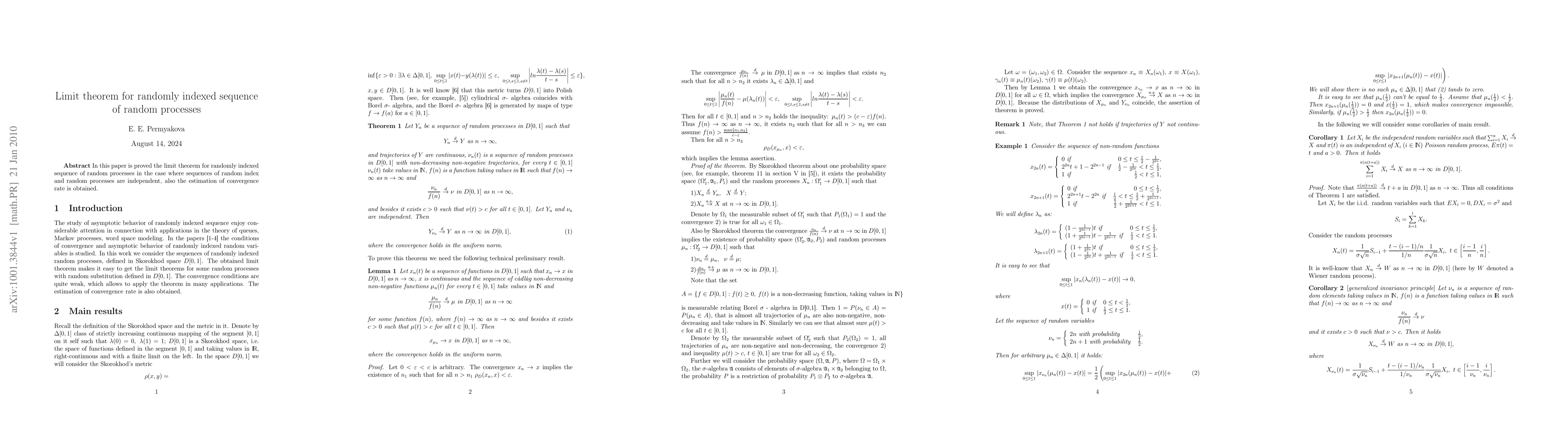 Summary: This paper establishes a limit theorem for a randomly indexed sequence of random processes, demonstrating convergence under independence conditions, and provides an estimation of the convergence rate.