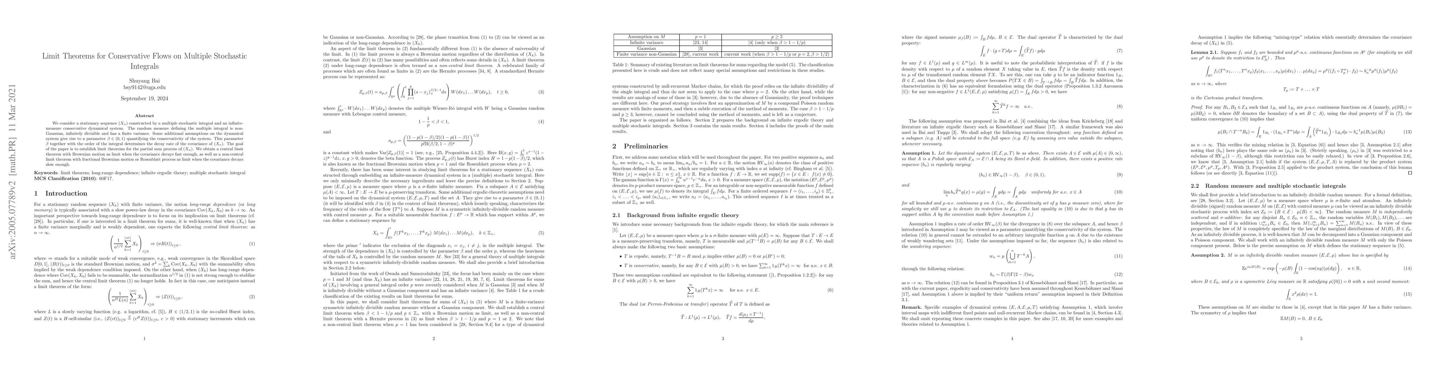 This research paper establishes limit theorems for a sequence generated by multiple stochastic integrals and conservative dynamical systems, providing central and non-central limit theorems under different decay rates of covariance.