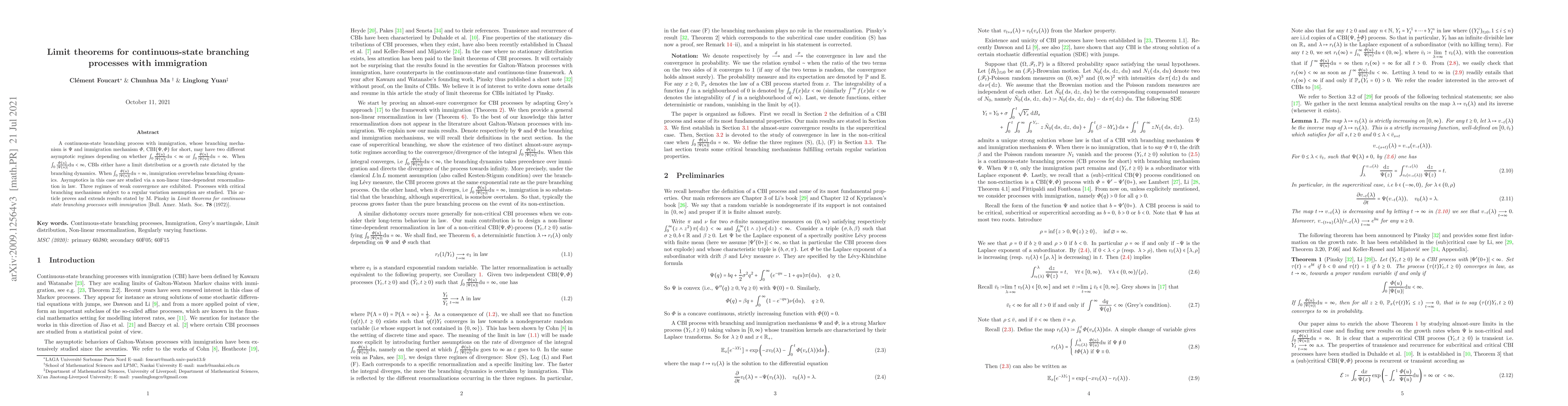 We prove and extend some results stated by Mark Pinsky: Limit theorems for continuous state branching processes with immigration [Bull. Amer. Math. Soc. 78(1972), 242--244]. Consider a continuous-state branching process with immigration $(Y_t,t\geq 0)$ with branching mechanism $\Psi$ and immigration mechanism $\Phi$ (CBI$(\Psi,\Phi)$ for short). We shed some light on two different asymptotic regimes occurring when $\int_{0}\frac{\Phi(u)}{|\Psi(u)|}du<\infty$ or $\int_{0}\frac{\Phi(u)}{|\Psi(u)|}du=\infty$. We first observe that when $\int_{0}\frac{\Phi(u)}{|\Psi(u)|}du<\infty$, supercritical CBIs have a growth rate dictated by the branching dynamics, namely there is a renormalization $\tau(t)$, only depending on $\Psi$, such that $(\tau(t)Y_t,t\geq 0)$ converges almost-surely to a finite random variable. When $\int_{0}\frac{\Phi(u)}{|\Psi(u)|}du=\infty$, it is shown that the immigration overwhelms the branching dynamics and that no linear renormalization of the process can exist. Asymptotics in the second regime are studied in details for all non-critical CBI processes via a nonlinear time-dependent renormalization in law. Three regimes of weak convergence are then exhibited, where a misprint in Pinsky's paper is corrected. CBI processes with critical branching mechanisms subject to a regular variation assumption are also studied.