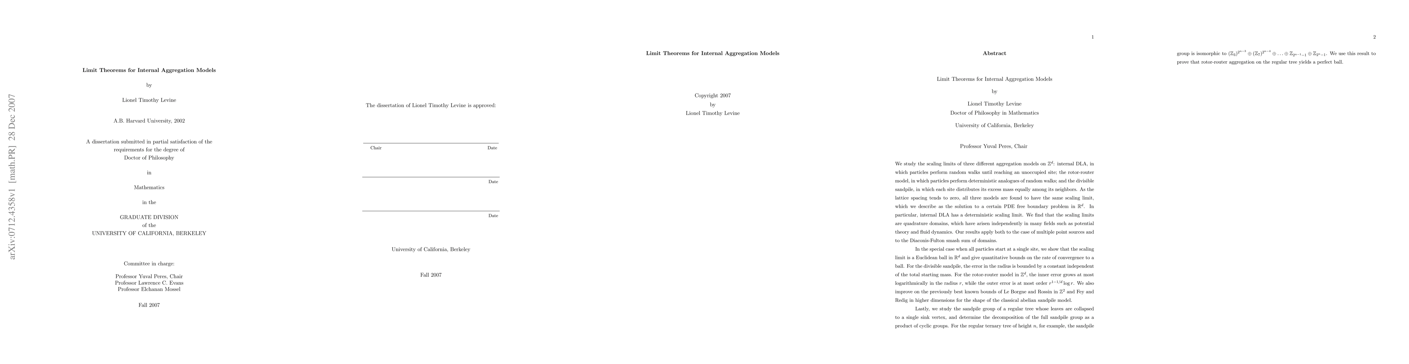 We study the scaling limits of three different aggregation models on the integer lattice Z^d: internal DLA, in which particles perform random walks until reaching an unoccupied site; the rotor-router model, in which particles perform deterministic analogues of random walks; and the divisible sandpile, in which each site distributes its excess mass equally among its neighbors. As the lattice spacing tends to zero, all three models are found to have the same scaling limit, which we describe as the solution to a certain PDE free boundary problem in R^d. In particular, internal DLA has a deterministic scaling limit. We find that the scaling limits are quadrature domains, which have arisen independently in many fields such as potential theory and fluid dynamics. Our results apply both to the case of multiple point sources and to the Diaconis-Fulton smash sum of domains. In the special case when all particles start at a single site, we show that the scaling limit is a Euclidean ball in R^d, and give quantitative bounds on the rate of convergence to a ball. We also improve on the previously best known bounds of Le Borgne and Rossin in Z^2 and Fey and Redig in higher dimensions for the shape of the classical abelian sandpile model. Lastly, we study the sandpile group of a regular tree whose leaves are collapsed to a single sink vertex, and determine the decomposition of the full sandpile group as a product of cyclic groups. For the regular ternary tree of height n, for example, the sandpile group is isomorphic to (Z_3)^{2^{n-3}} x (Z_7)^{2^{n-4}} x ... x Z_{2^{n-1}-1} x Z_{2^n-1}. We use this result to prove that rotor-router aggregation on the regular tree yields a perfect ball.