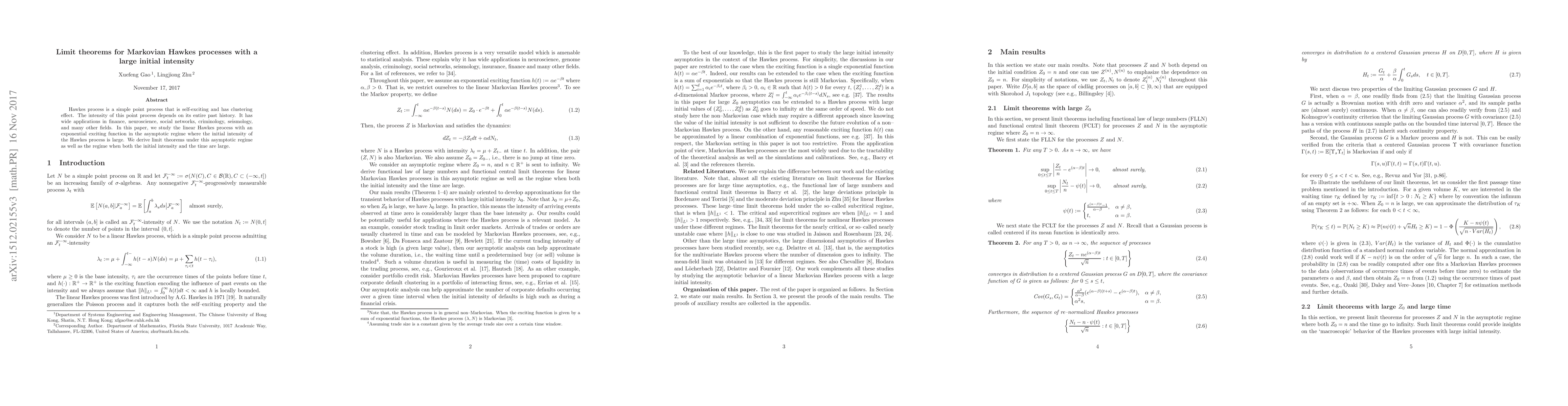 This paper investigates the linear Hawkes process with an exponential exciting function under large initial intensity conditions, deriving limit theorems for both the asymptotic regime and the scenario where both initial intensity and time are large. Applications span various fields including finance, neuroscience, and seismology.