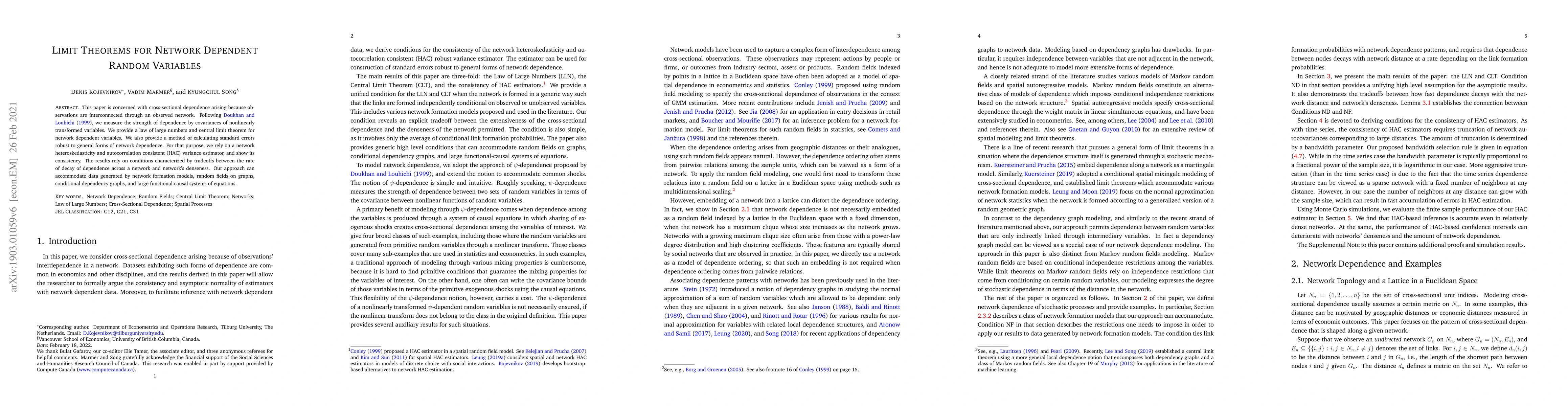 This paper is concerned with cross-sectional dependence arising because observations are interconnected through an observed network. Following Doukhan and Louhichi (1999), we measure the strength of dependence by covariances of nonlinearly transformed variables. We provide a law of large numbers and central limit theorem for network dependent variables. We also provide a method of calculating standard errors robust to general forms of network dependence. For that purpose, we rely on a network heteroskedasticity and autocorrelation consistent (HAC) variance estimator, and show its consistency. The results rely on conditions characterized by tradeoffs between the rate of decay of dependence across a network and network's denseness. Our approach can accommodate data generated by network formation models, random fields on graphs, conditional dependency graphs, and large functional-causal systems of equations.
