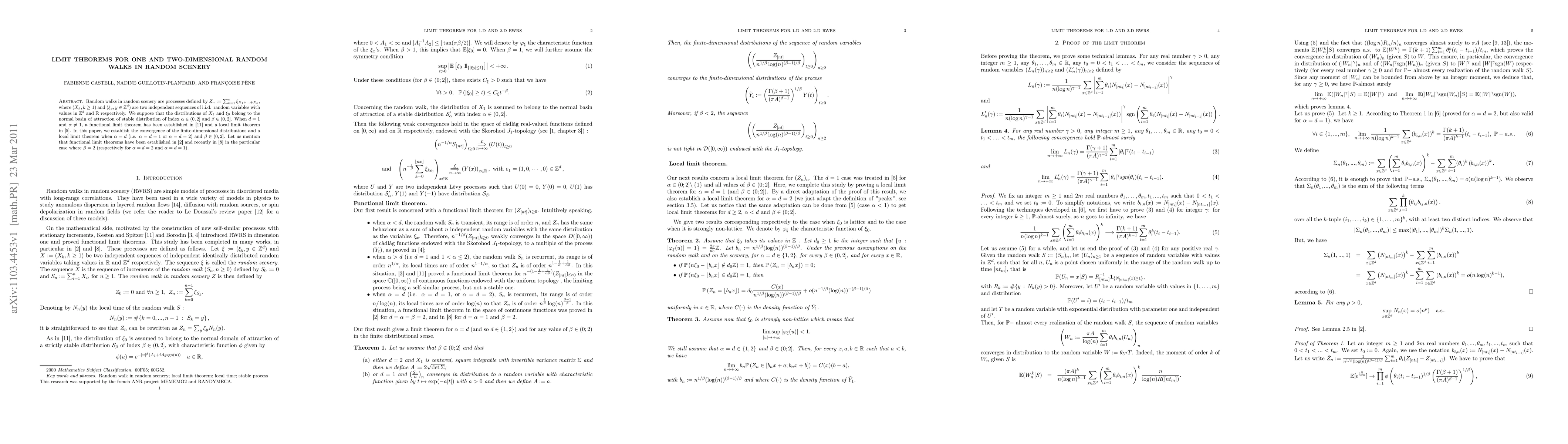 This paper establishes the convergence of finite-dimensional distributions and a local limit theorem for one- and two-dimensional random walks in random scenery, specifically when $\alpha=d$ and $\beta \in (0,2]$. It extends previous results for $\alpha \ne 1$ and $\beta=2$.