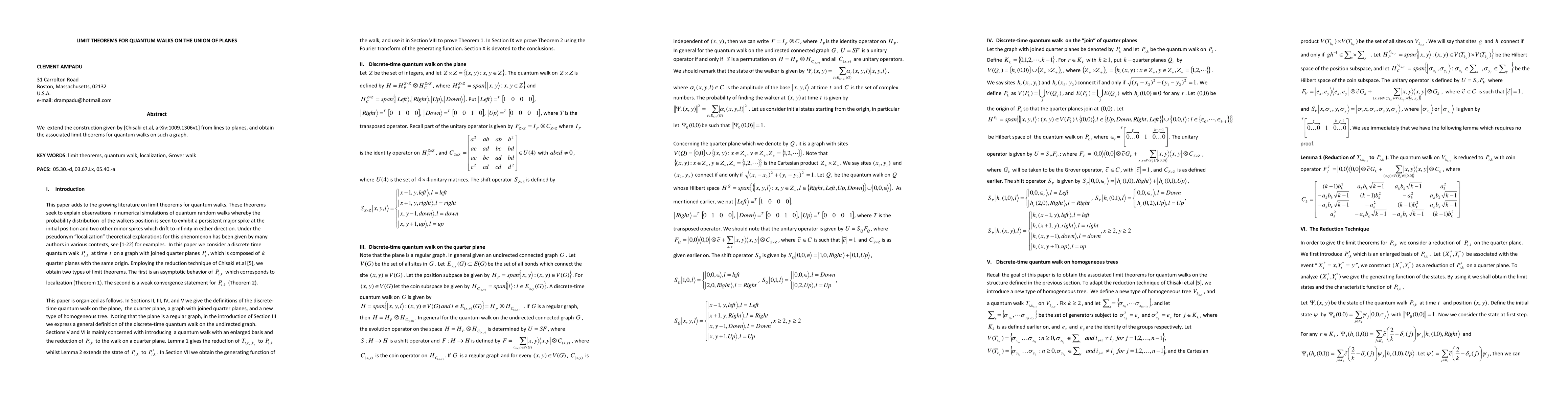 Summary: This paper extends the quantum walk construction from lines to planes and derives limit theorems for quantum walks on the union of these planes, building on prior work by Chisaki et al.
