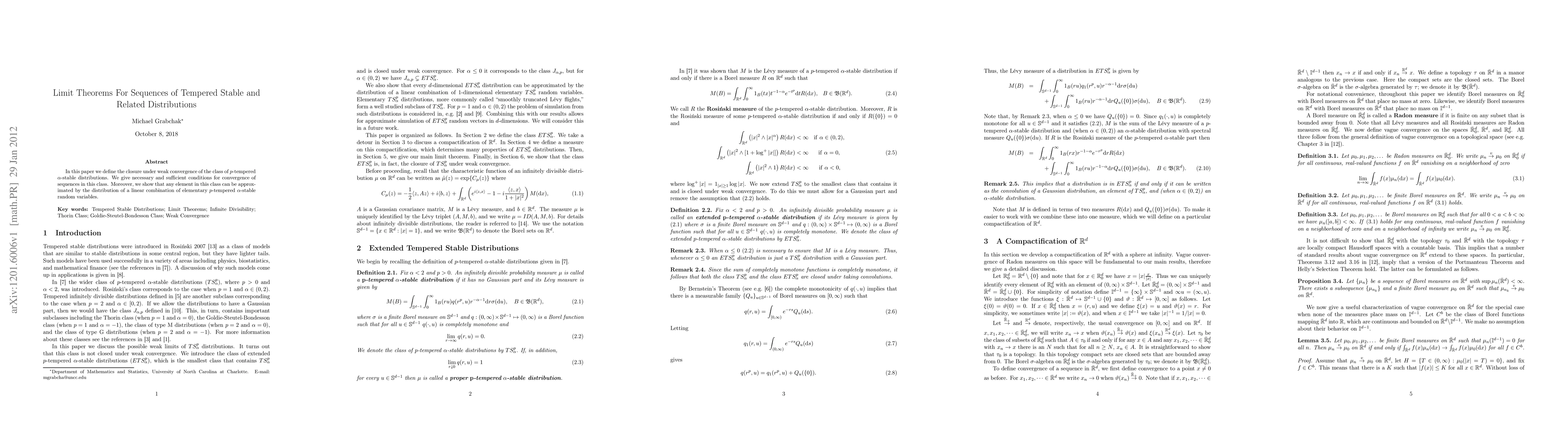 This paper establishes the closure under weak convergence of p-tempered α-stable distributions and provides necessary and sufficient conditions for their convergence. It also demonstrates that any distribution in this class can be approximated by linear combinations of elementary p-tempered α-stable random variables.