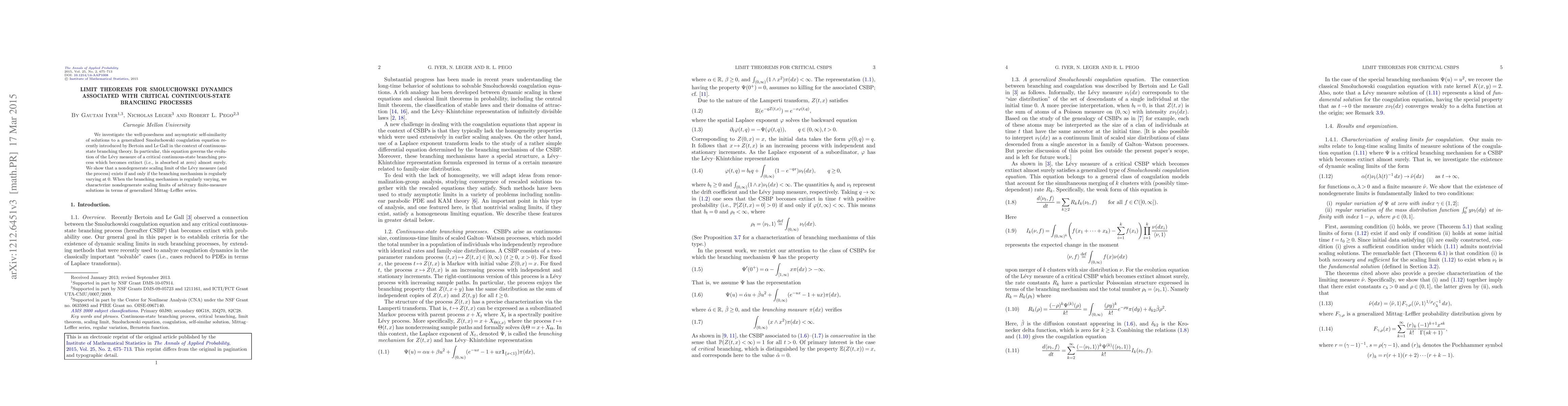 Researchers investigate a coagulation equation governing critical continuous-state branching processes and find that a nondegenerate scaling limit exists if the branching mechanism is regularly varying at 0.