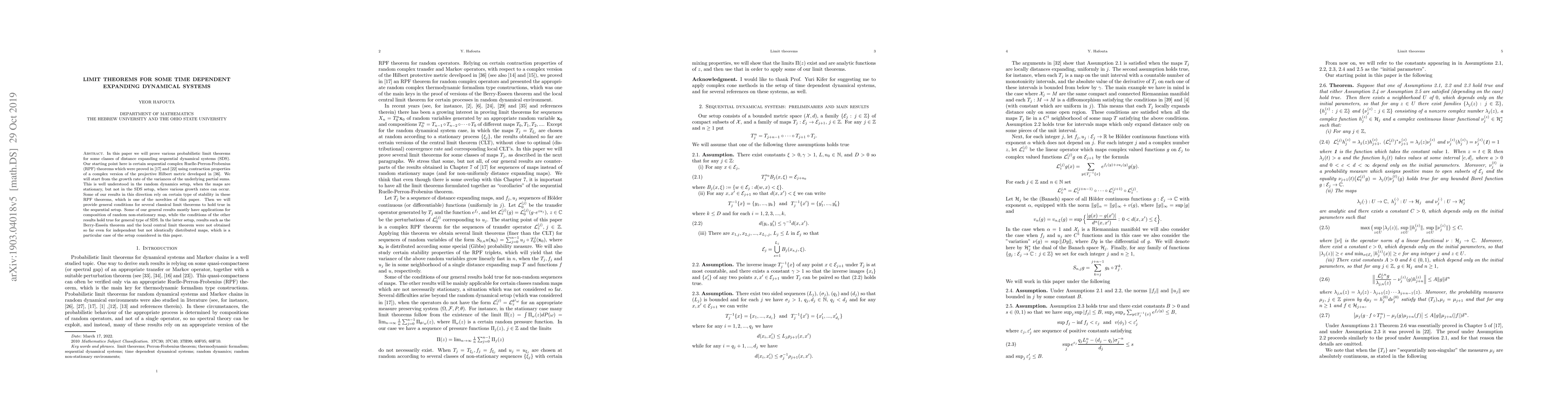 This paper proves probabilistic limit theorems for sequential dynamical systems, building on RPF theorems and focusing on the growth rates of variances in non-stationary map compositions. It establishes conditions for classical limit theorems in these systems, extending results to scenarios where maps are independent but not identically distributed.