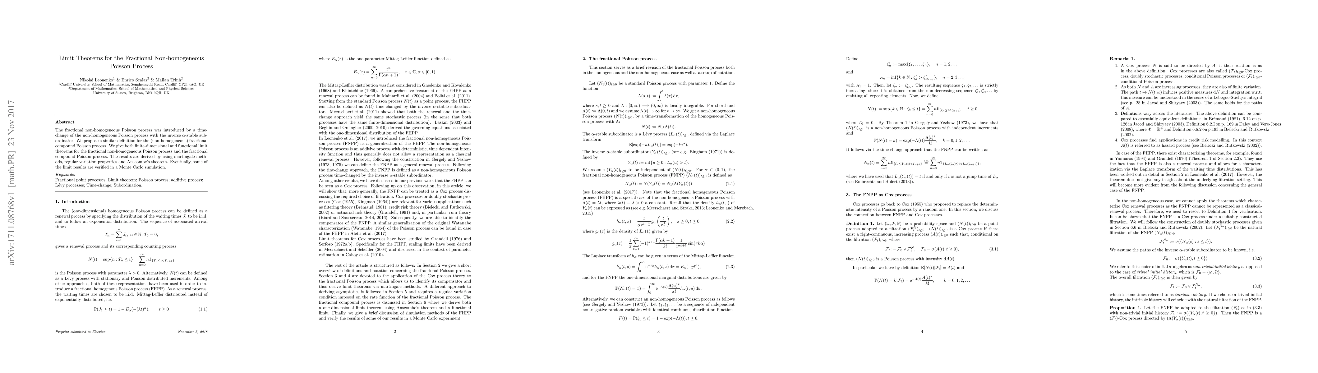 This paper introduces the fractional non-homogeneous Poisson process and the fractional compound Poisson process, providing finite-dimensional and functional limit theorems using martingale methods and regular variation. Monte Carlo simulations validate some of the derived limit results.