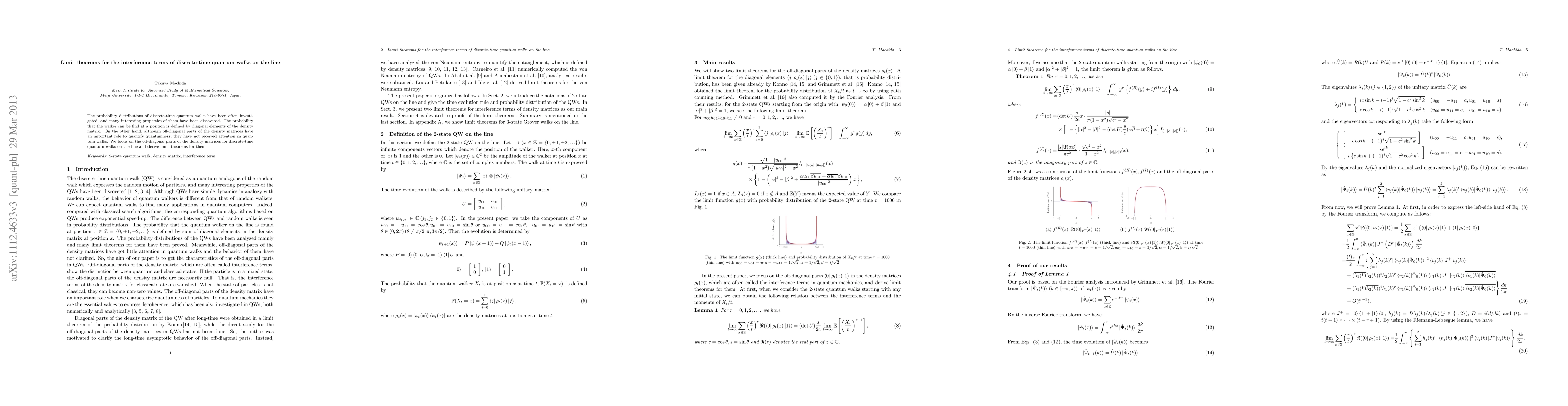 This paper investigates the off-diagonal parts of the density matrices in discrete-time quantum walks on the line, which quantify the quantum interference terms, and derives limit theorems for these interference terms. The study aims to highlight the importance of these off-diagonal elements in understanding quantumness in quantum walks.