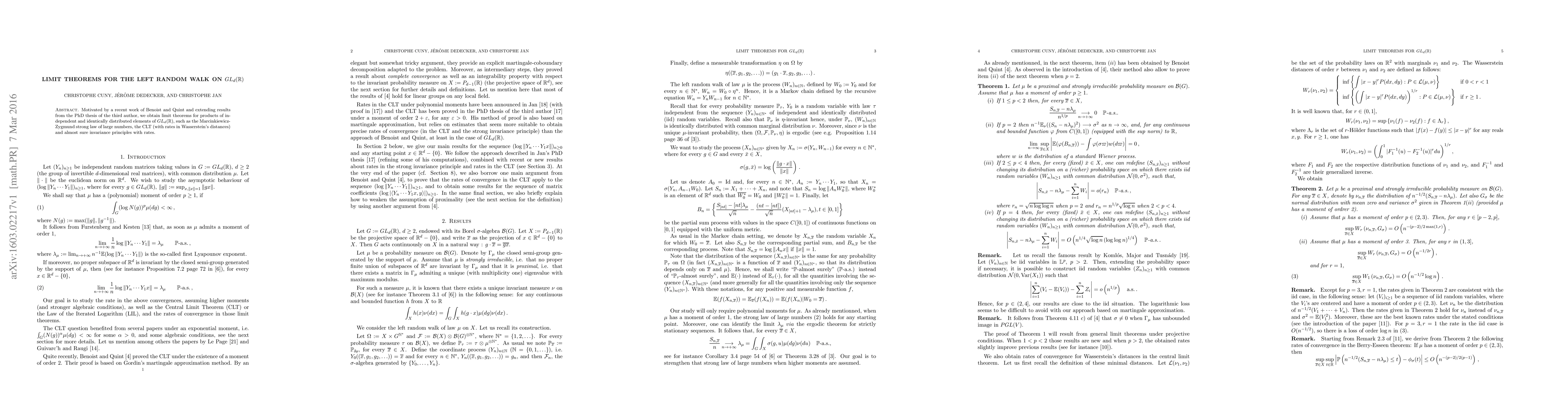 This research paper establishes limit theorems for products of independent elements from the general linear group GLd(R), including strong laws of large numbers and convergence in distribution.