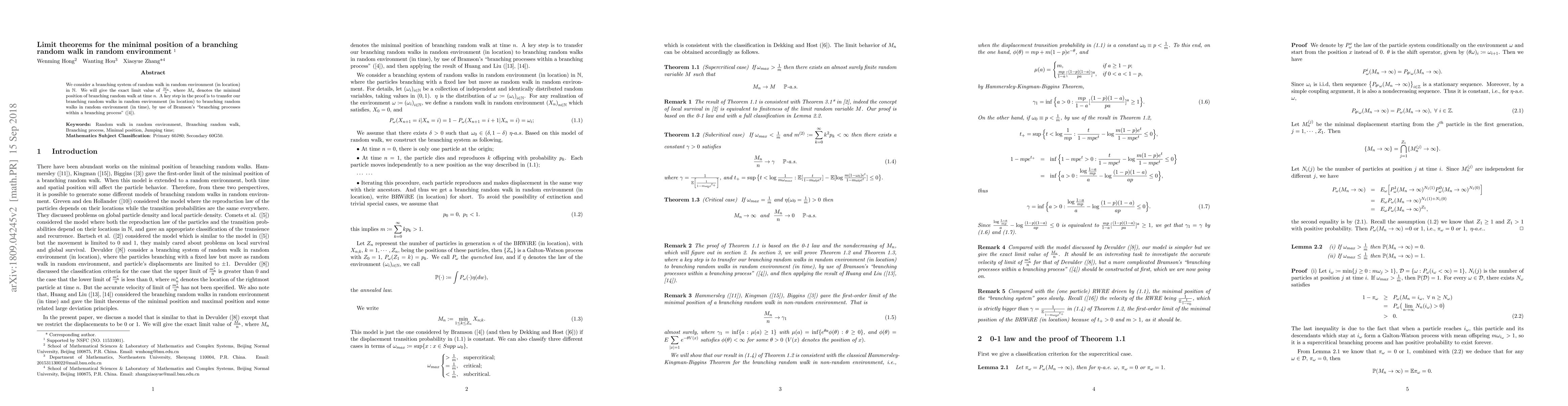 This paper investigates the limit behavior of the minimal position of a branching random walk in a random environment, deriving the exact limit value of $\frac{M_{n}}{n}$ as $n$ approaches infinity. The proof leverages Bramson's "branching processes within a branching process" technique to transform the problem into a more tractable form.