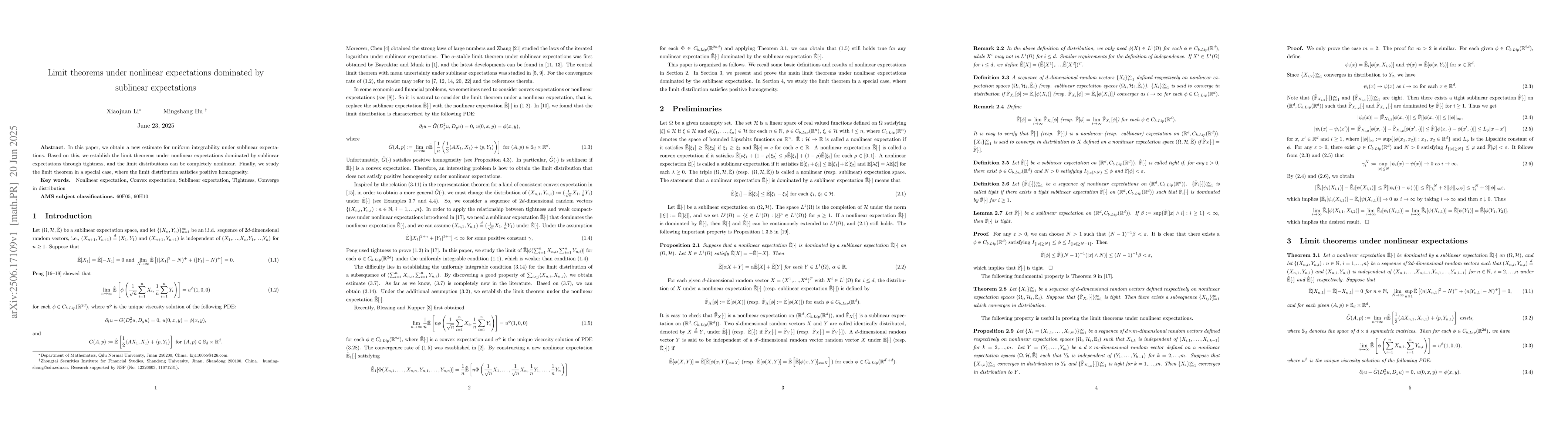 This research contributes to the field of stochastic analysis by providing new limit theorems that are applicable in scenarios involving nonlinear expectations, which have significant implications in finance and risk management.