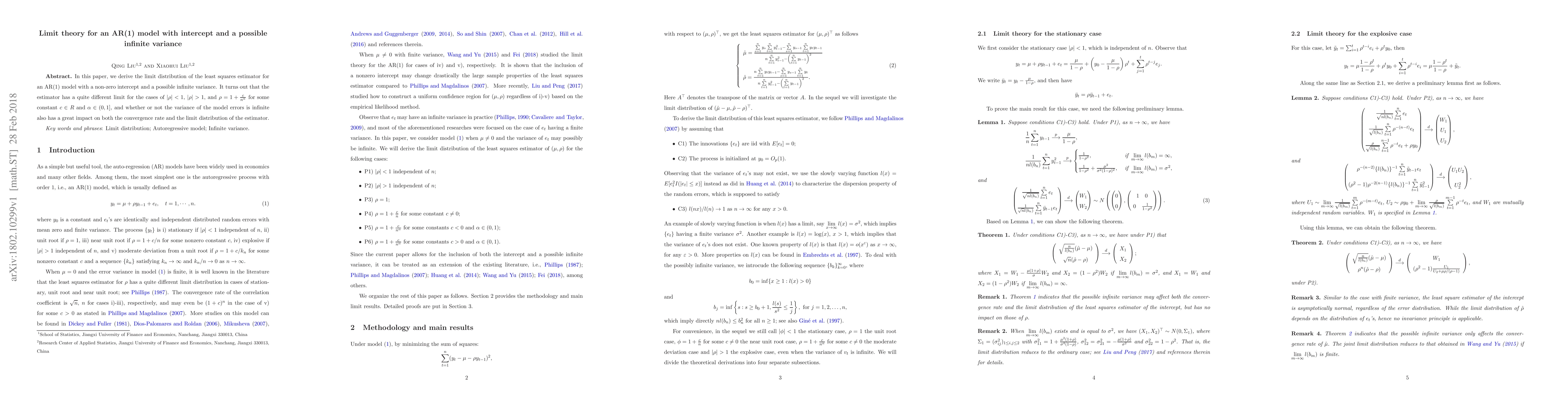 In this paper, we derive the limit distribution of the least squares estimator for an AR(1) model with a non-zero intercept and a possible infinite variance. It turns out that the estimator has a quite different limit for the cases of $|\rho| < 1$, $|\rho| > 1$, and $\rho = 1 + \frac{c}{n^\alpha}$ for some constant $c \in R$ and $\alpha \in (0, 1]$, and whether or not the variance of the model errors is infinite also has a great impact on both the convergence rate and the limit distribution of the estimator.