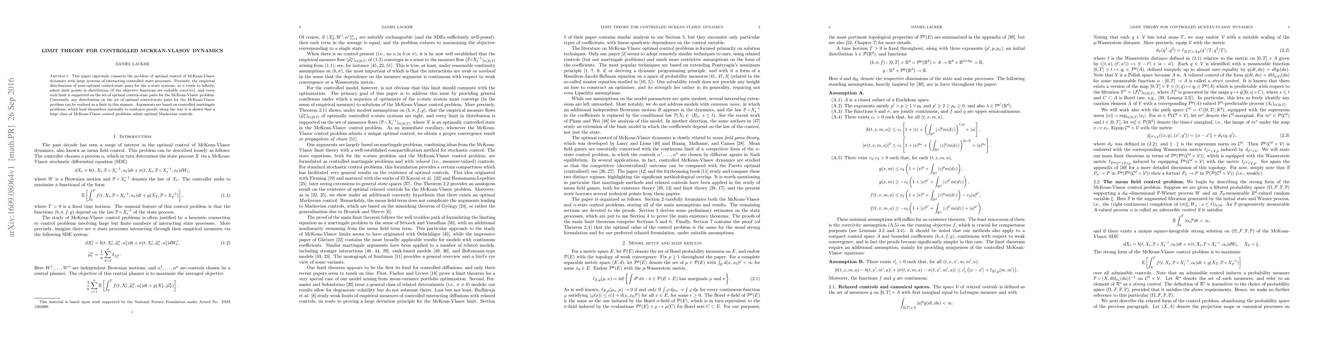 This paper establishes a limit theory for optimal control of large systems of interacting controlled state processes governed by McKean-Vlasov dynamics, showing that empirical distributions of near-optimal control-state pairs converge to optimal pairs for the McKean-Vlasov problem. The results are derived using controlled martingale problems and demonstrate the existence of optimal Markovian controls.