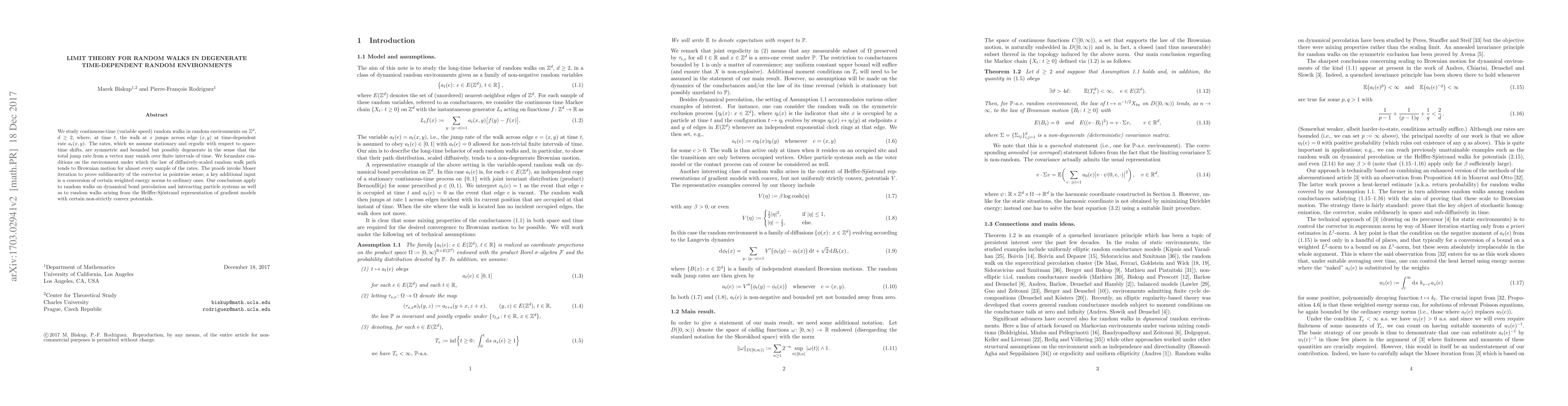 This paper investigates continuous-time random walks in time-dependent random environments on $\mathbb{Z}^d$, where jump rates can degenerate, and establishes conditions under which the diffusively-scaled random walk converges to Brownian motion. The proofs utilize Moser iteration and energy norm conversions.