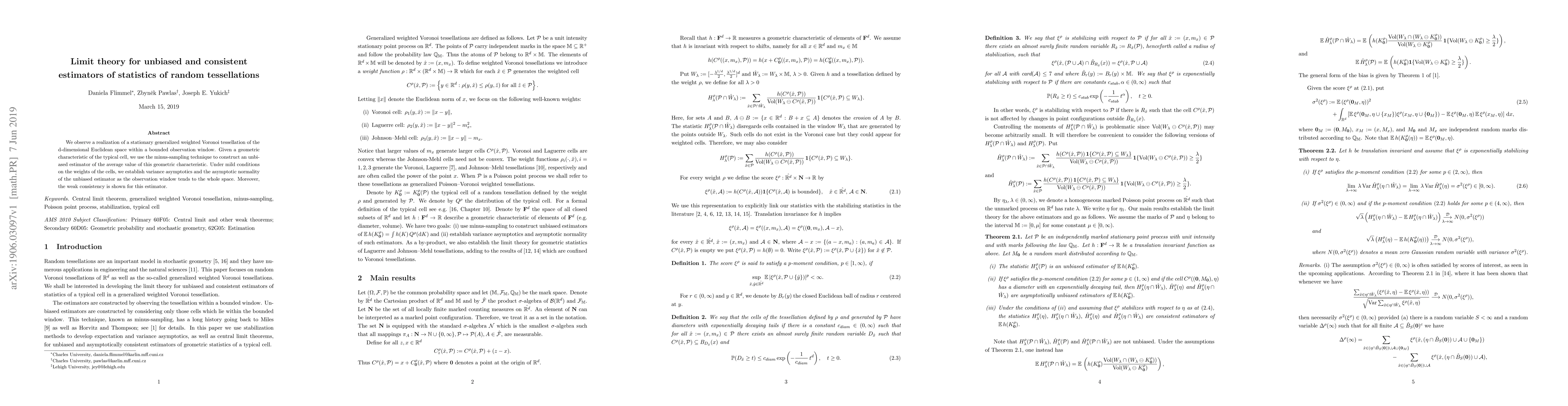 We observe a realization of a stationary generalized weighted Voronoi tessellation of the d-dimensional Euclidean space within a bounded observation window. Given a geometric characteristic of the typical cell, we use the minus-sampling technique to construct an unbiased estimator of the average value of this geometric characteristic. Under mild conditions on the weights of the cells, we establish variance asymptotics and the asymptotic normality of the unbiased estimator as the observation window tends to the whole space. Moreover, the weak consistency is shown for this estimator.