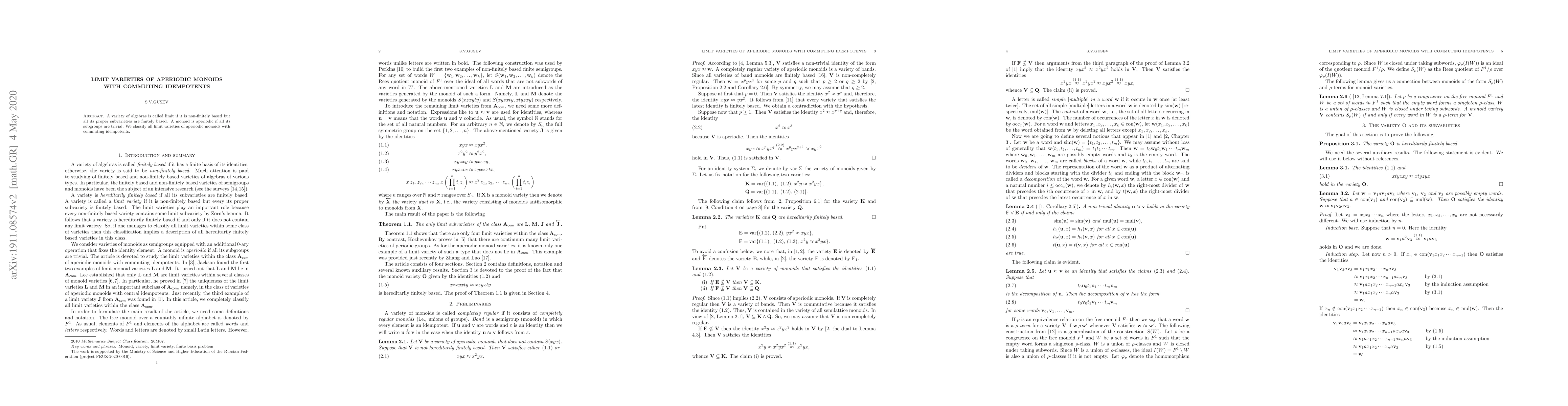 This paper classifies all limit varieties of aperiodic monoids where idempotents commute, identifying those that are non-finitely based while having all proper subvarieties as finitely based. It provides a detailed structural analysis of these algebraic systems.