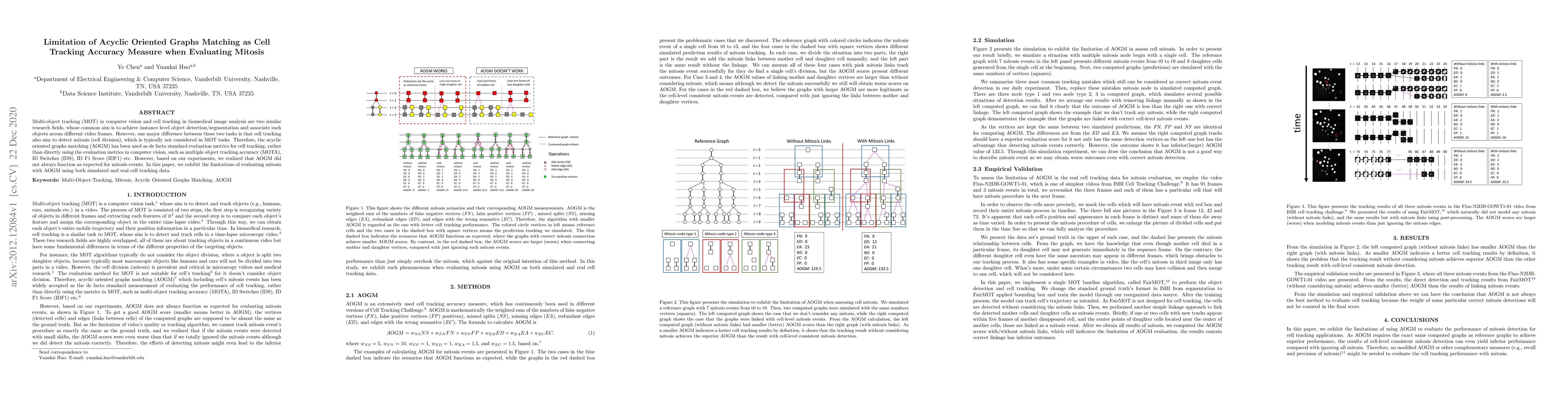 The AOGM method is flawed for evaluating mitosis in cell tracking, leading to inaccurate results when detecting cell division events. Researchers found limitations using both simulated and real cell tracking data.