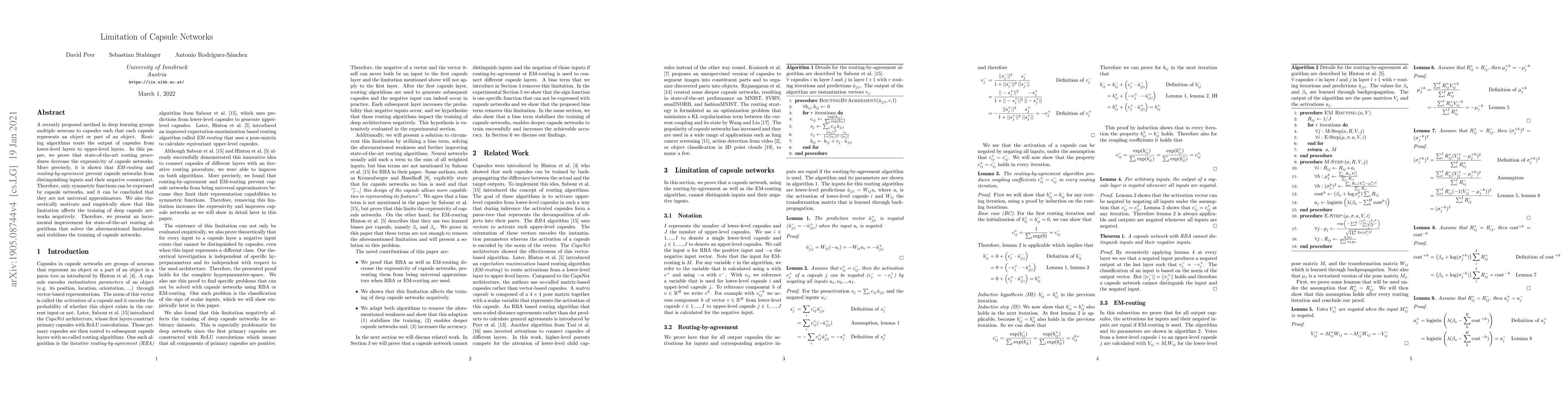 A recently proposed method in deep learning groups multiple neurons to capsules such that each capsule represents an object or part of an object. Routing algorithms route the output of capsules from lower-level layers to upper-level layers. In this paper, we prove that state-of-the-art routing procedures decrease the expressivity of capsule networks. More precisely, it is shown that EM-routing and routing-by-agreement prevent capsule networks from distinguishing inputs and their negative counterpart. Therefore, only symmetric functions can be expressed by capsule networks, and it can be concluded that they are not universal approximators. We also theoretically motivate and empirically show that this limitation affects the training of deep capsule networks negatively. Therefore, we present an incremental improvement for state-of-the-art routing algorithms that solves the aforementioned limitation and stabilizes the training of capsule networks.