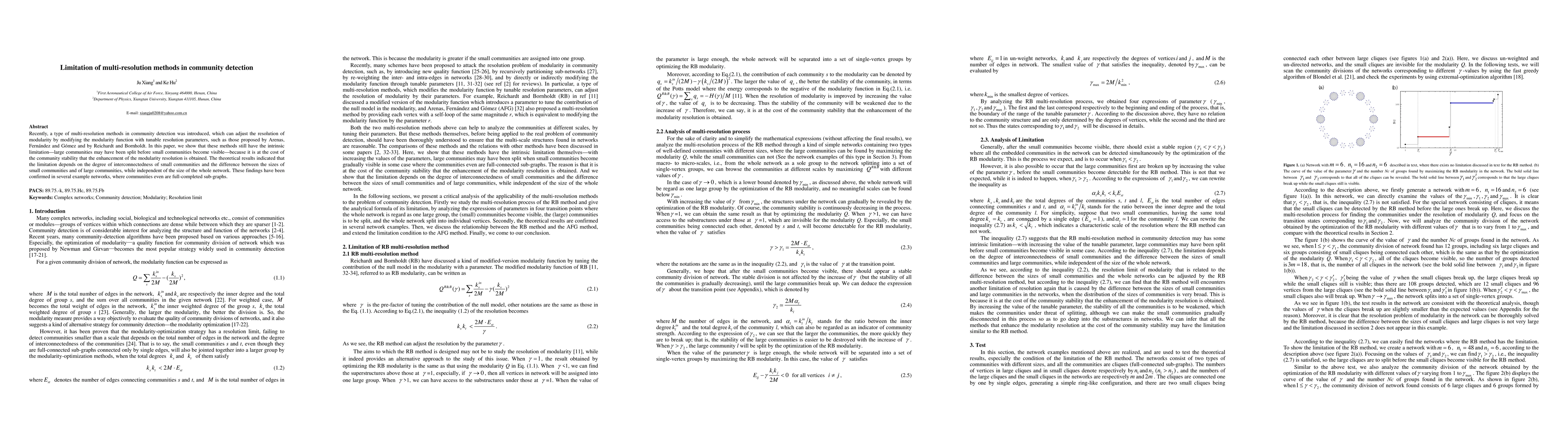 This paper identifies a limitation in multi-resolution methods for community detection: large communities may split before small communities become visible, compromising stability. Theoretical results show this limitation depends on small community interconnectedness and size differences, not the overall network size.
