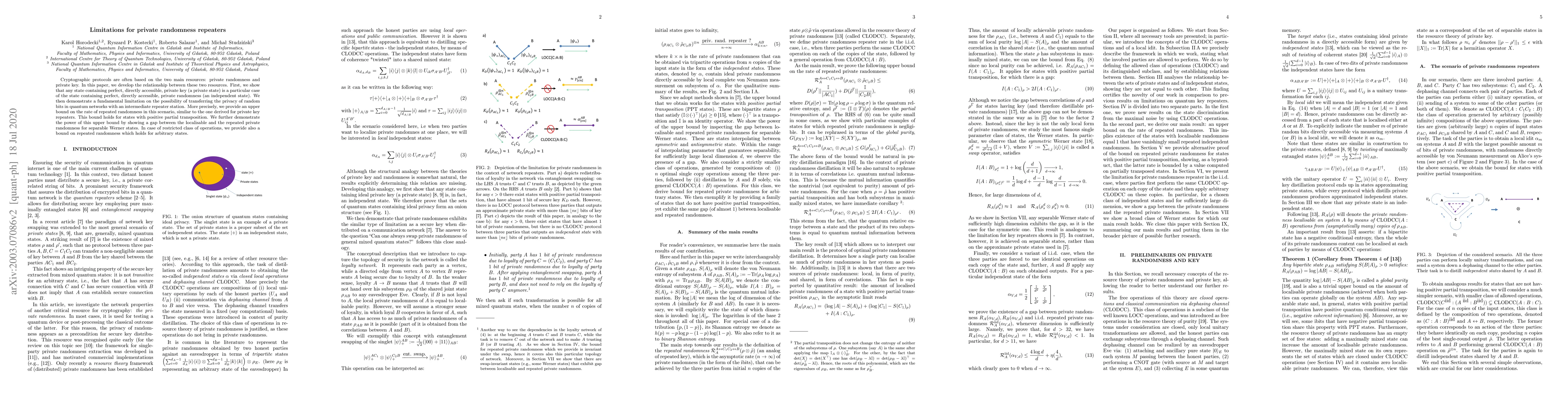 Researchers found a fundamental limit on transferring private randomness in quantum networks with an intermediate repeater station. They established upper bounds for the rate of repeated randomness, showing a gap between localizable and repeated private randomness.