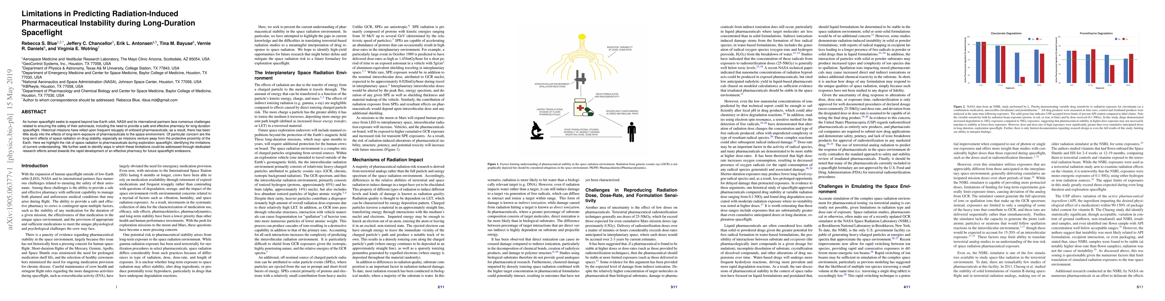 As human spaceflight seeks to expand beyond low-Earth orbit, NASA and its international partners face numerous challenges related to ensuring the safety of their astronauts, including the need to provide a safe and effective pharmacy for long-duration spaceflight. Historical missions have relied upon frequent resupply of onboard pharmaceuticals; as a result, there has been little study into the effects of long-term exposure of pharmaceuticals to the space environment. Of particular concern are the long-term effects of space radiation on drug stability, especially as missions venture away from the protective proximity of the Earth. Here we highlight the risk of space radiation to pharmaceuticals during exploration spaceflight, identifying the limitations of current understanding. We further seek to identify ways in which these limitations could be addressed through dedicated research efforts aimed towards the rapid development of an effective pharmacy for future spaceflight endeavors.