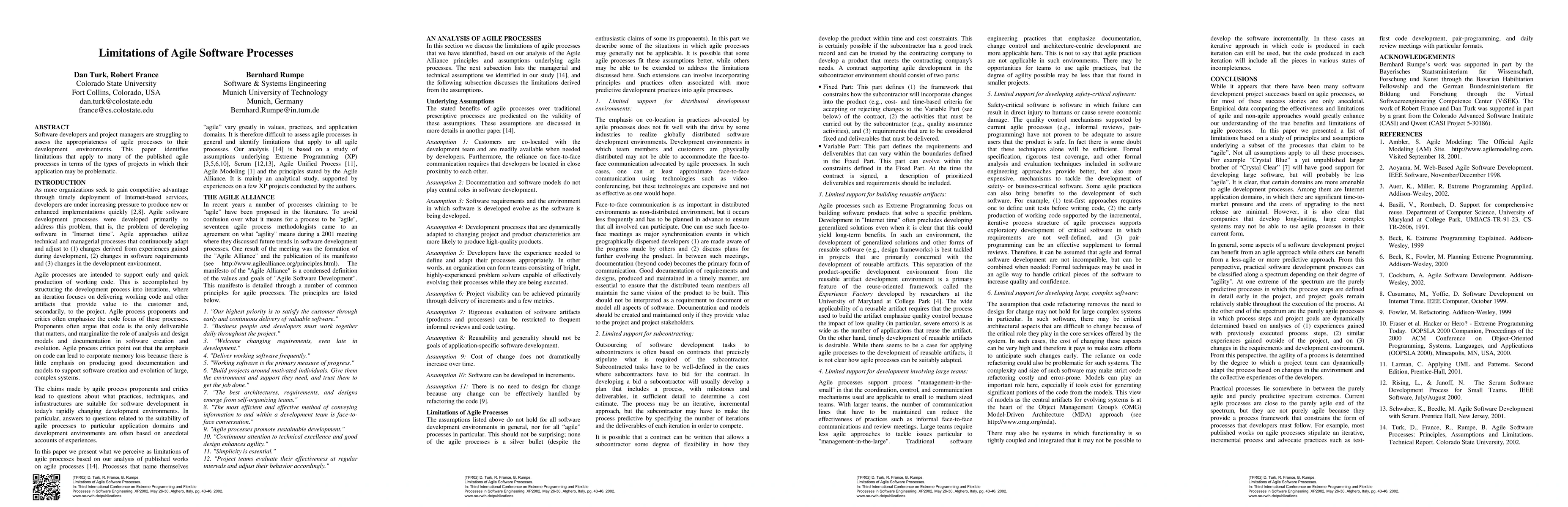 This paper explores the constraints of agile software development processes, highlighting scenarios where their application may lead to difficulties for developers and project managers. It identifies specific project types where agile methodologies may not be suitable.